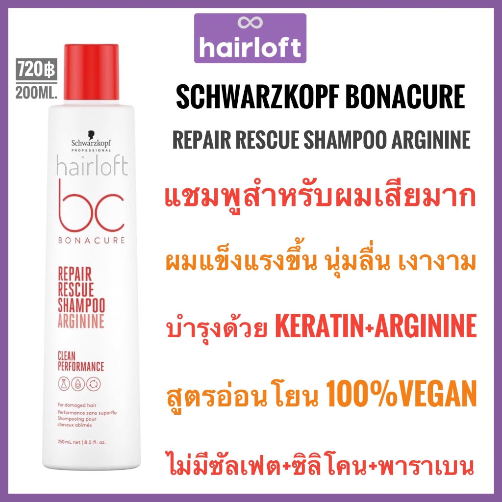 ชวาร์สคอฟ โบนาเคียว แชมพูสำหรับผมแห้งเสียมาก Schwarzkopf Bonacure Repair Rescue Shampoo Arginine 250ml.