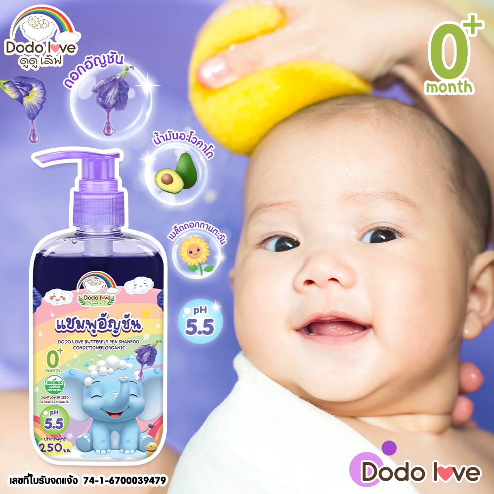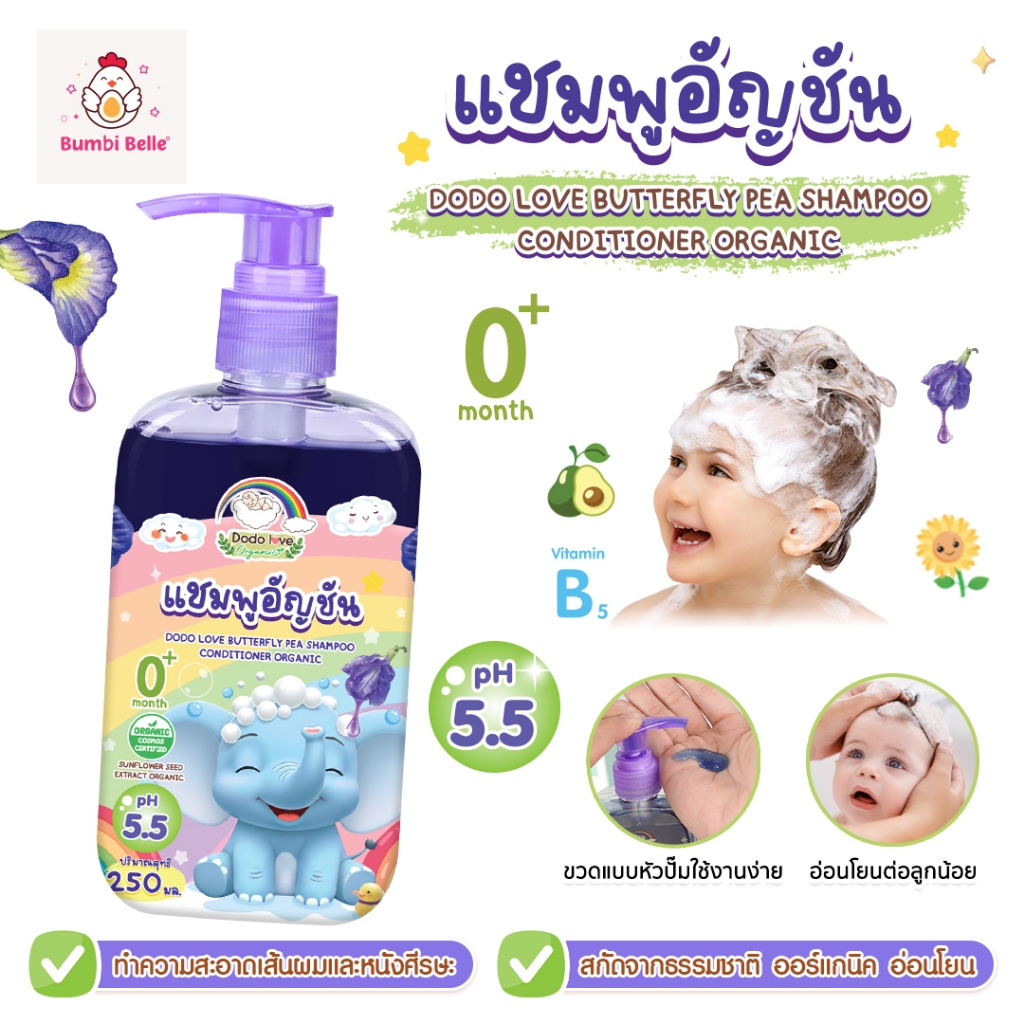 ส่งด่วน DODOLOVE Organic แชมพูเด็ก ผสมคอนดิชันเนอร์ 2in1 สูตรอ่อนโยน ยาส ระผม ผสมอัญชัน สูตรออร์แกนิค