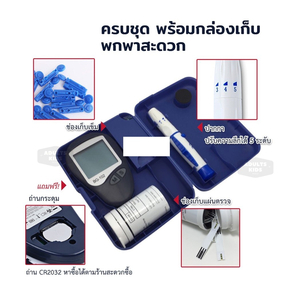 ลดเพิ่ม 30% เครื่องตรวจน้ำตาล เครื่องวัดน้ำตาล วัดเบาหวาน BG-102 พร้อม 25 แผ่นตรวจ ประกัน 5 ปี [มีใบอนุญาติ]