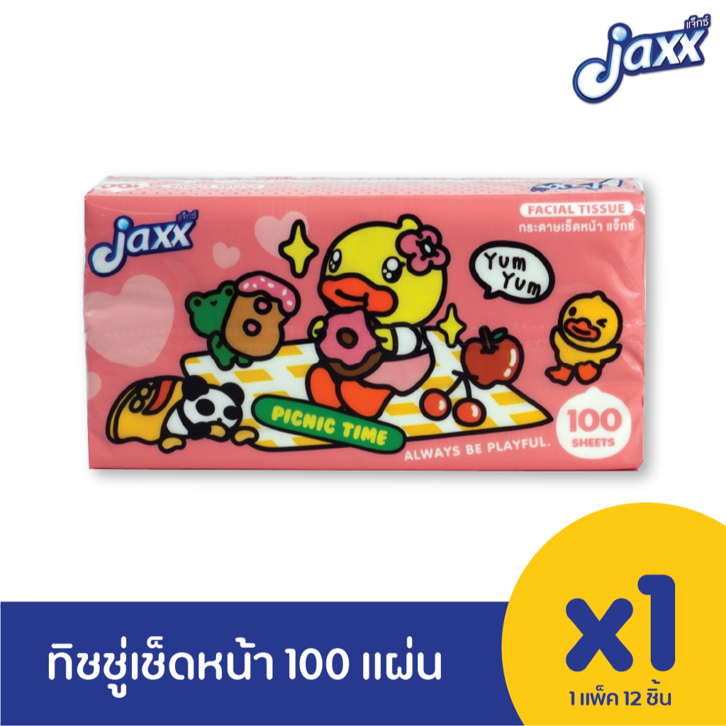 Jaxx กระดาษเช็ดหน้ารุ่น 100 แผ่น ลายเป็ด บีดัค (3 ลายในหิ้ว)