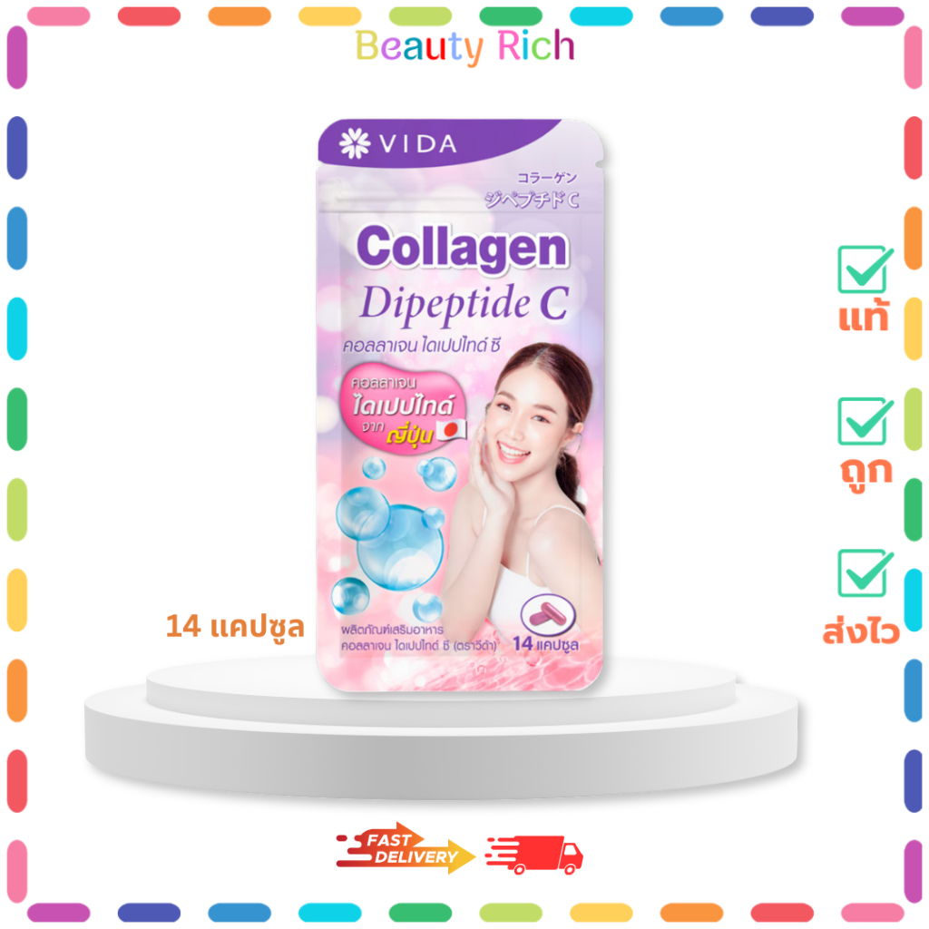 (1 ซอง) Vida Collagen Dipeptide C วีด้า คอลลาเจน ไดแปปไทด์ ซี (14 แคปซูล)