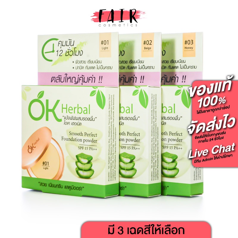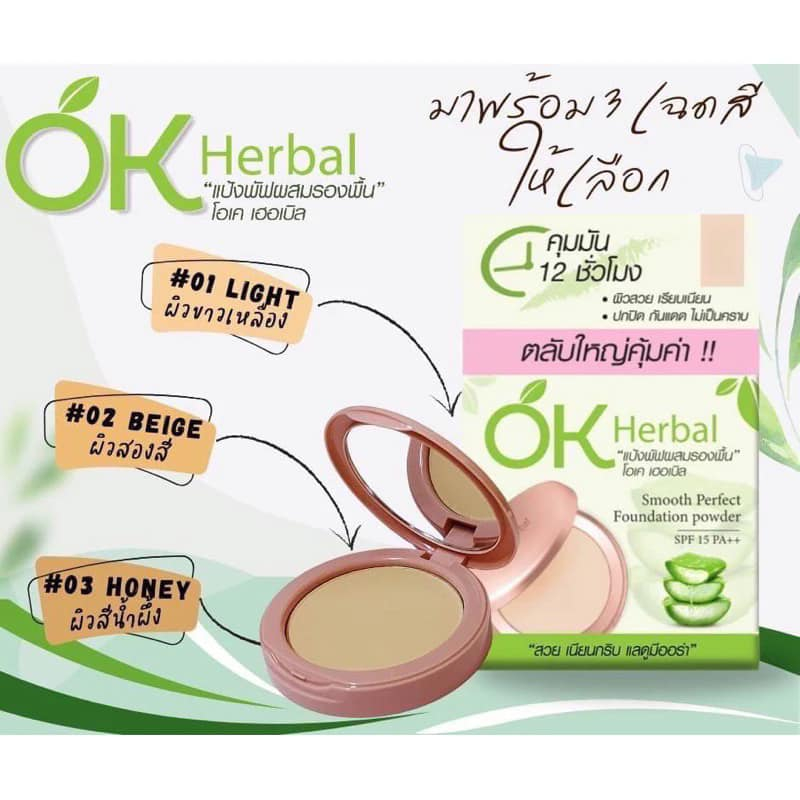 แป้งพัฟ OK Herbal Smooth Perfect Foundation Powder โอเค เฮอเบิล สมูธ เพอร์เฟค ฟาวเดชั่น พาวเดอร์ SPF15 PA+++ [10 กรัม]
