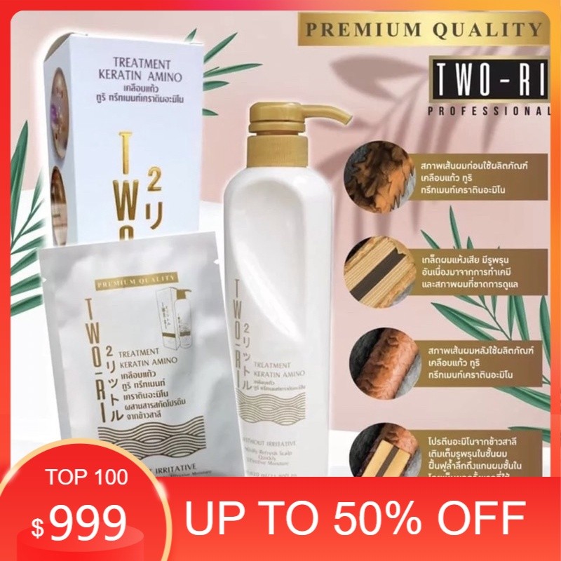 Two-Ri(ทูริ) ทรีตเม้นท์ เคราติน พร้อมอะมิโนแอซิดจากข้าวสาลี หมักผมบำรุงผม เพื่อผมสวย นุ่มลื่น เงางาม