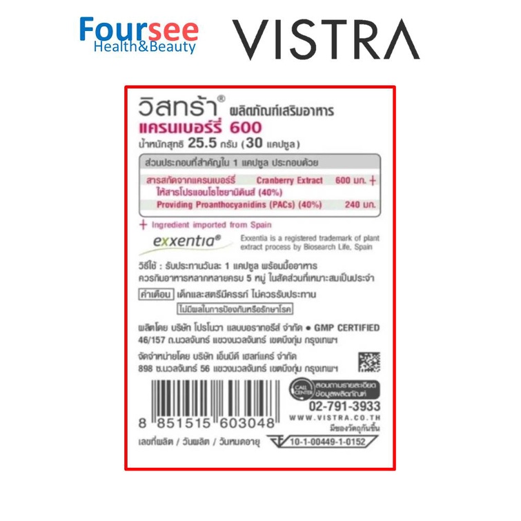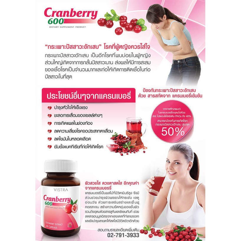 VISTRA Cranberry 600 mg 30 แคปซูล วิสทร้า แครนเบอร์รี่