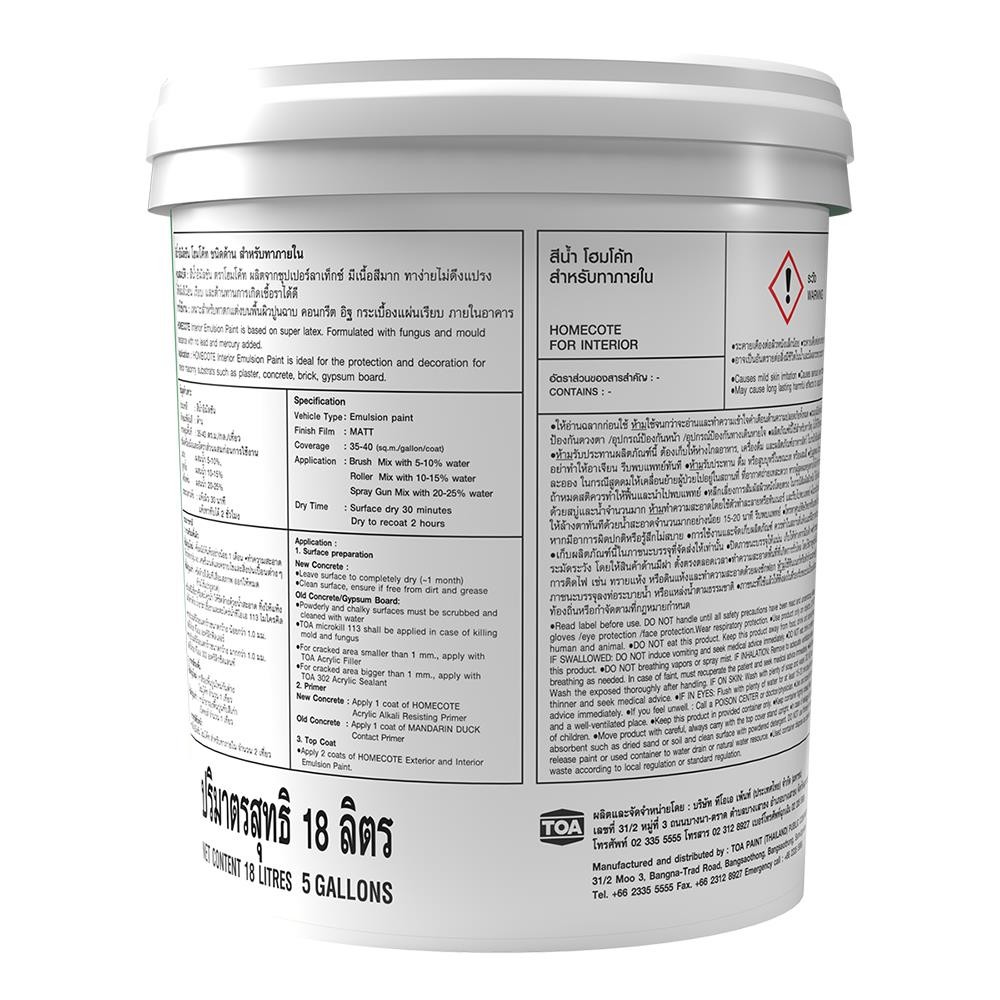 TOA สีน้ำทาภายใน HOMECOTE HC500 สีขาวมุก ด้าน 5 แกลลอน จัดส่งโดย HomePro