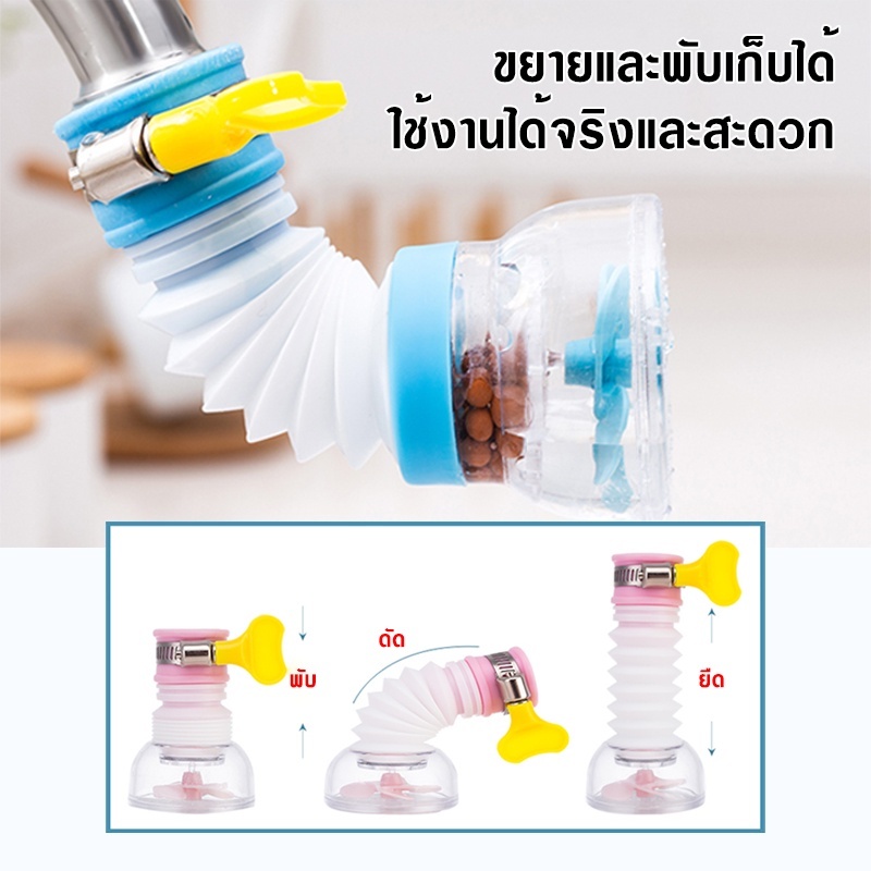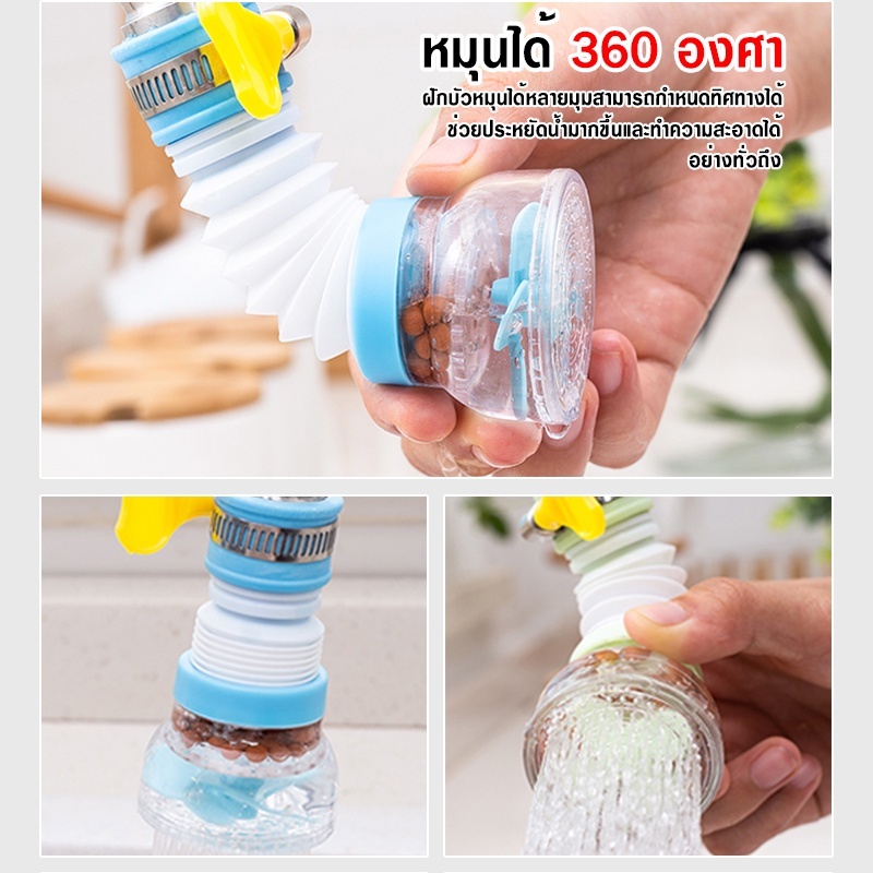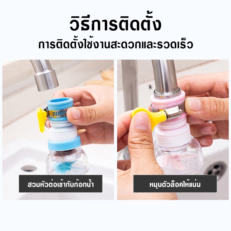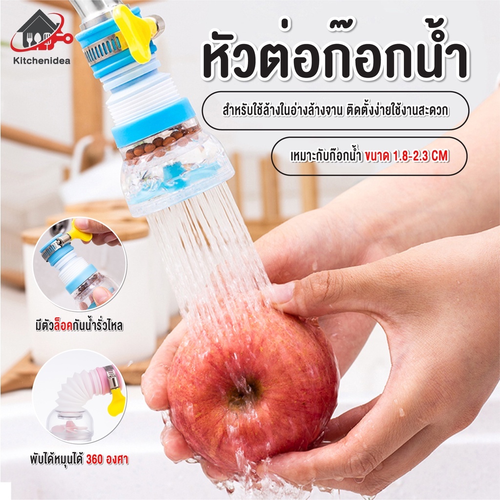 หัวต่อก๊อกน้ำอ่างล้างจาน หัวก๊อกน้ำหมุนได้ 360 องศา ข้อต่อก๊อกน้ำประหยัดน้ำ มีที่กรอง