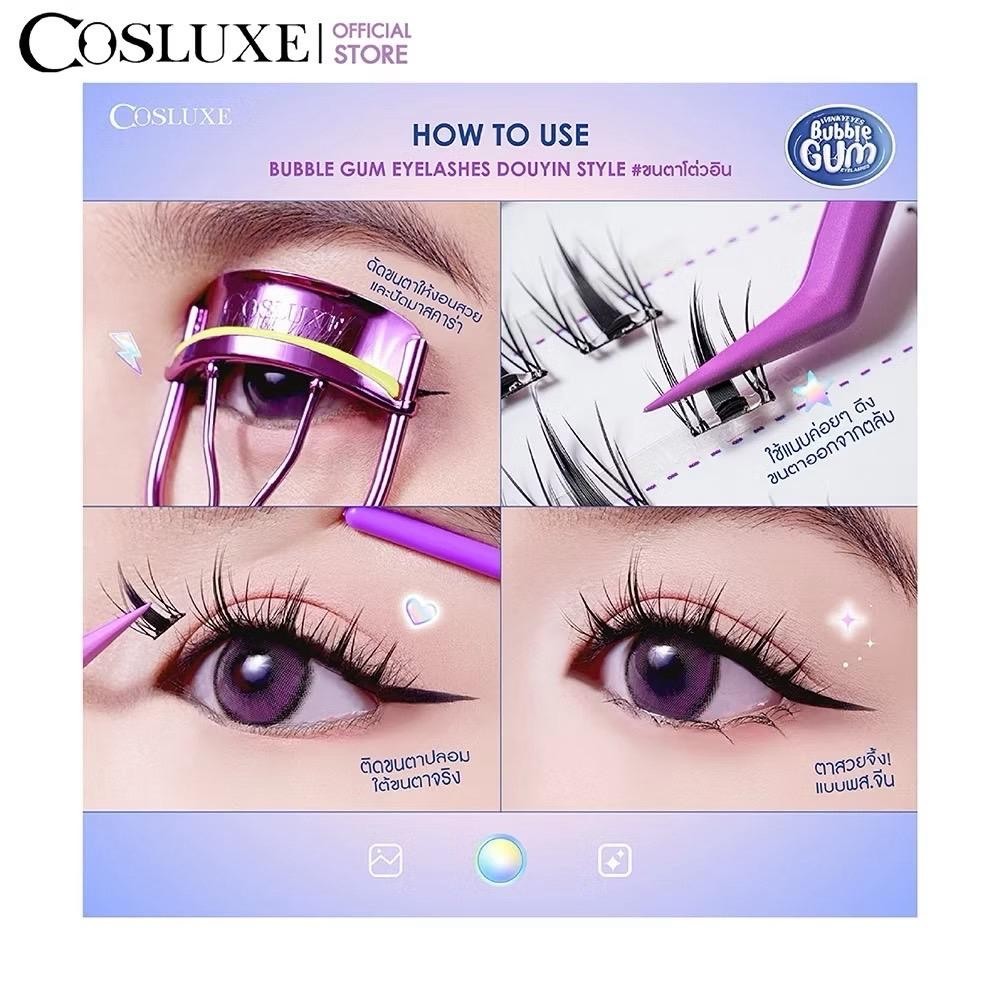 Cosluxe ขนตาปลอมแบบจับช่อ แบบมีกาวในตัว ติดง่าย ติดแน่น Winky Eyes Bubble Gum Eyelashes-Douyin Style