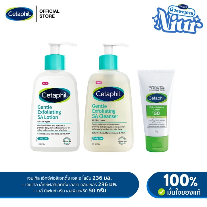 NIUR Set - CETAPHIL GENTLE EXFOLIATING SA CLEANSER 236 ML,GENTLE EXFOLIATING SA LOTION 236 ML,DAILY DEFENSE CREAM SPF50