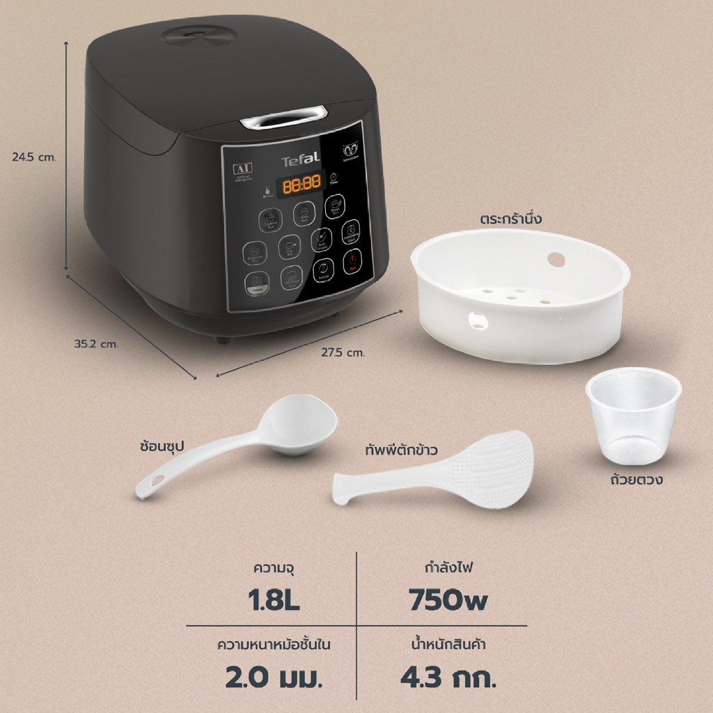 Tefal ทีฟาล์ว หม้อหุงข้าวอัจฉริย ะ EASY RICE PLUS รุ่น RK736B66 ขนาด1.8L สีเทาดำ