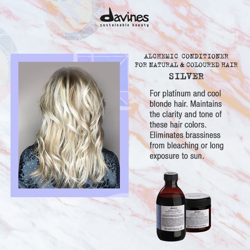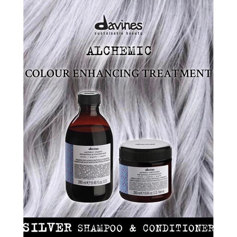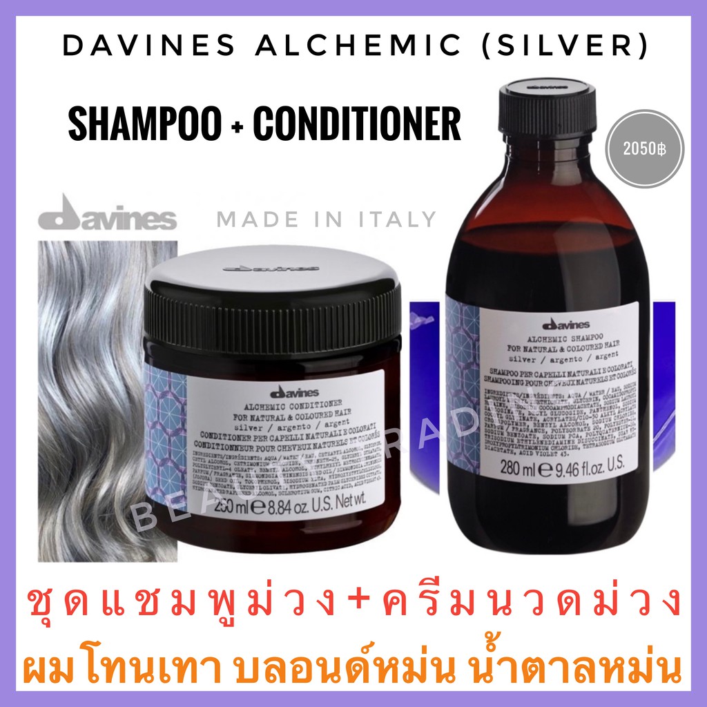 Davines Alchemic🔥ดาวิเนส ชุดแชมพูม่วง+ครีมนวดม่วง🔥Davines Alchemic Shampoo 280ml.+Conditioner 250ml.Silver Shampoo