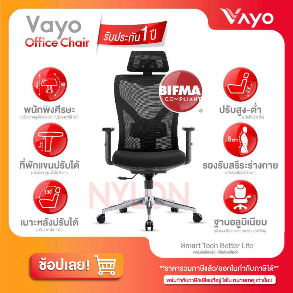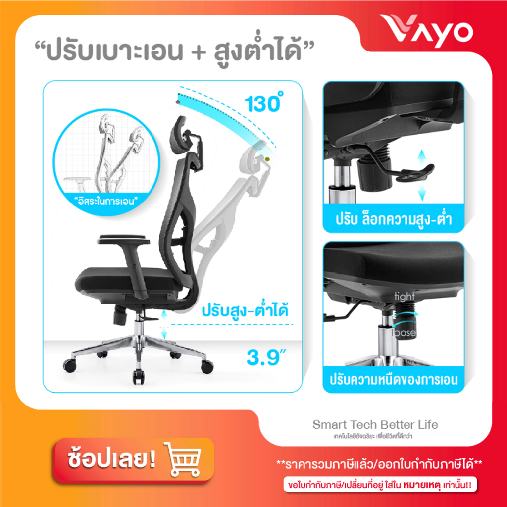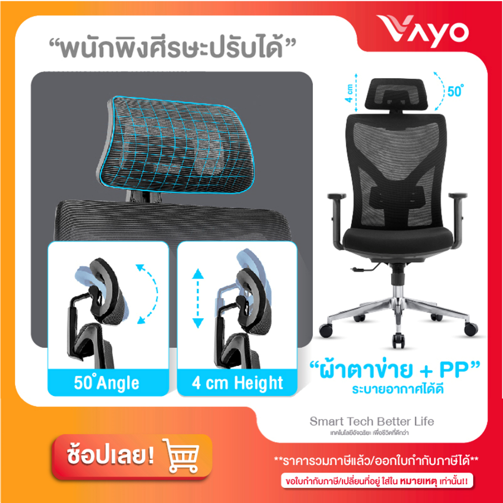 Vayo Ergonomic Design Chair เก้าอี้เพื่อสุขภาพ เก้าอี้ออฟฟิศ ลดปวดหลัง ปรับได้ 4D มี/ไม่มีพนักพิงหัว