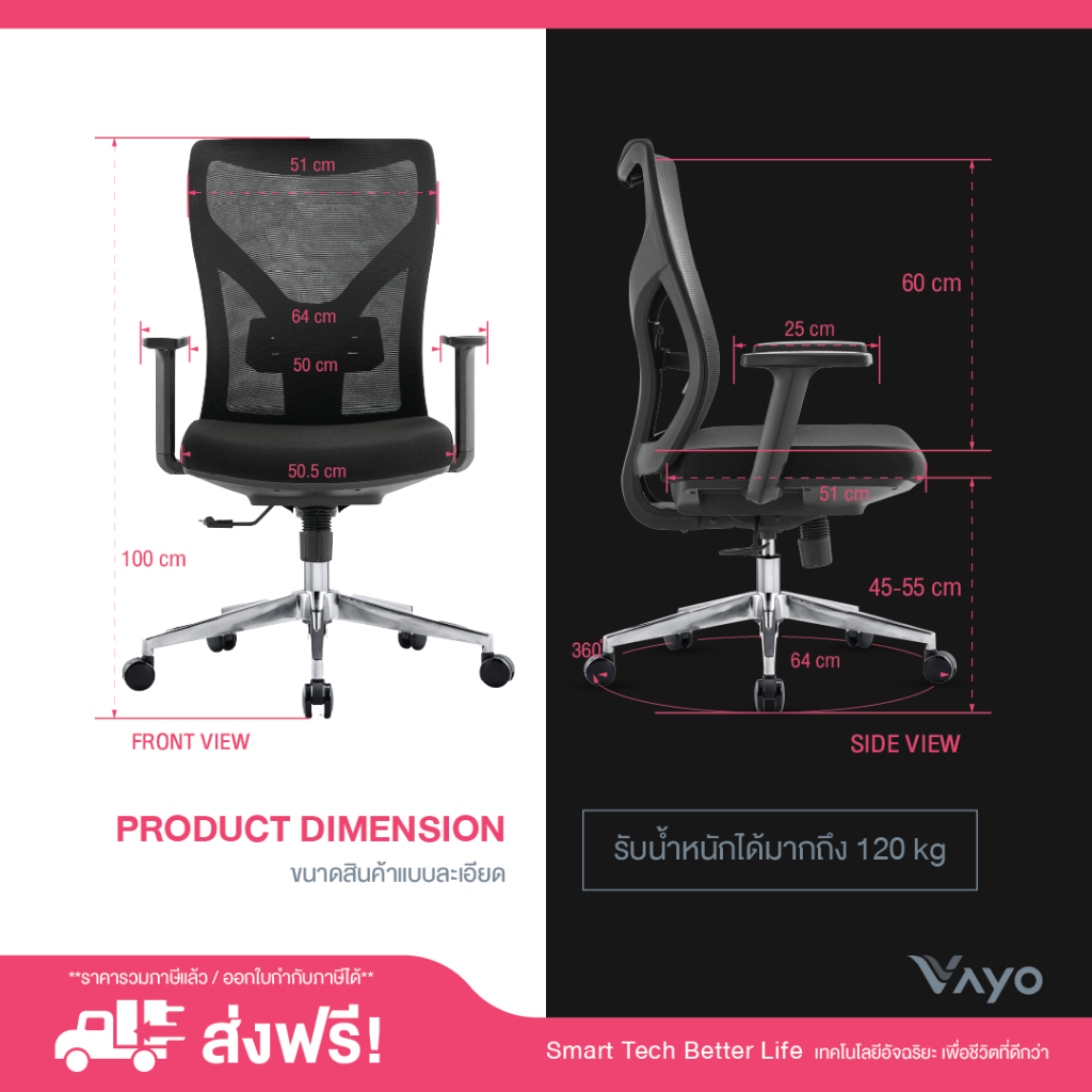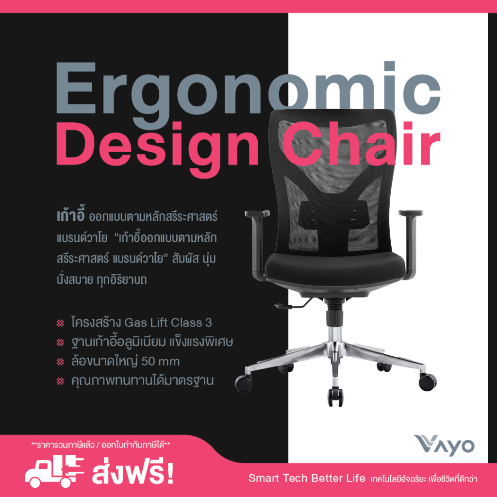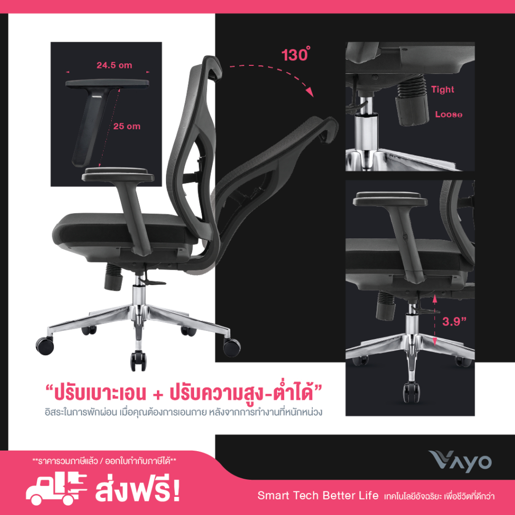 Vayo Ergonomic Design Chair เก้าอี้เพื่อสุขภาพ เก้าอี้ออฟฟิศ ลดปวดหลัง ปรับได้ 4D มี/ไม่มีพนักพิงหัว