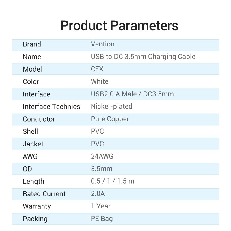 Vention สายแปลง USB to DC 5V/2A สำหรับพัดลม USB Hub อุปกรณ์พกพา