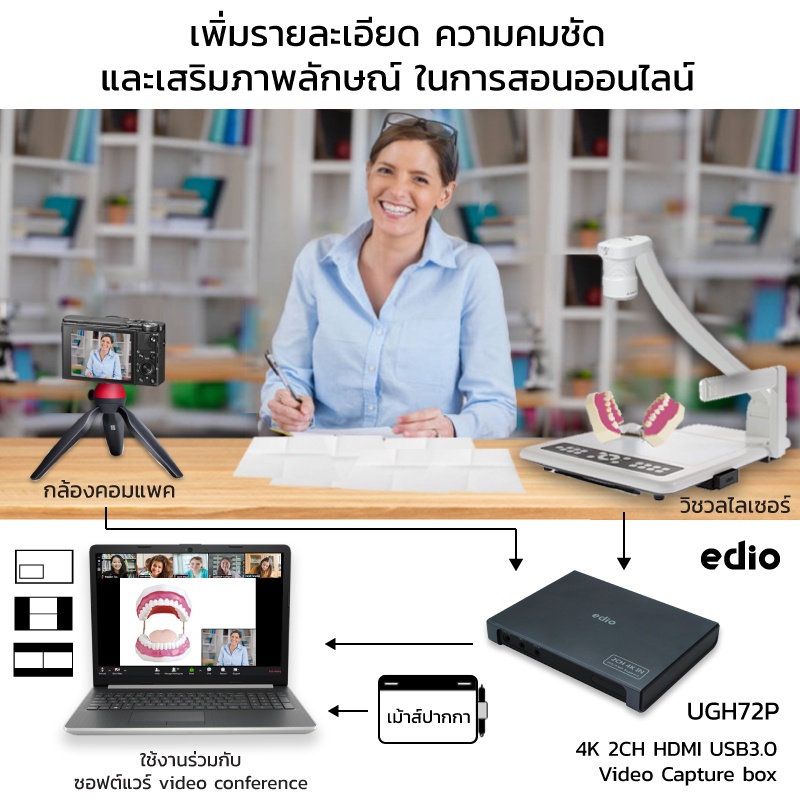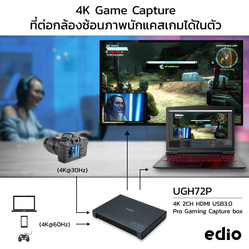 Video Capture 2 HDMI input Capture Card USB3.0 รองรับ 4K | รุ่น UGH72P ยี่ห้อ edio ประกัน 2 ปี