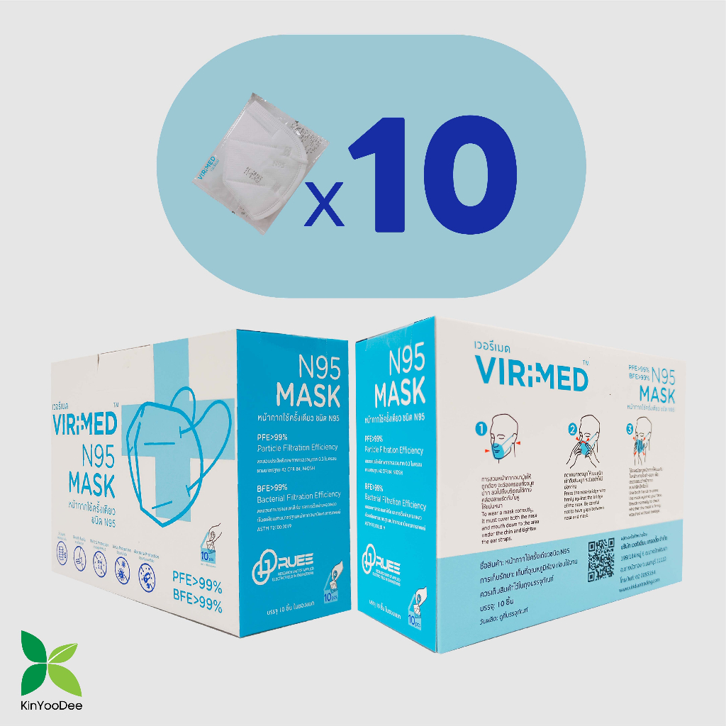 Virimed เวอรีเมด หน้ากาก N95 ชนิดใช้ครั้งเดียว แพ็ค 10 ชิ้น