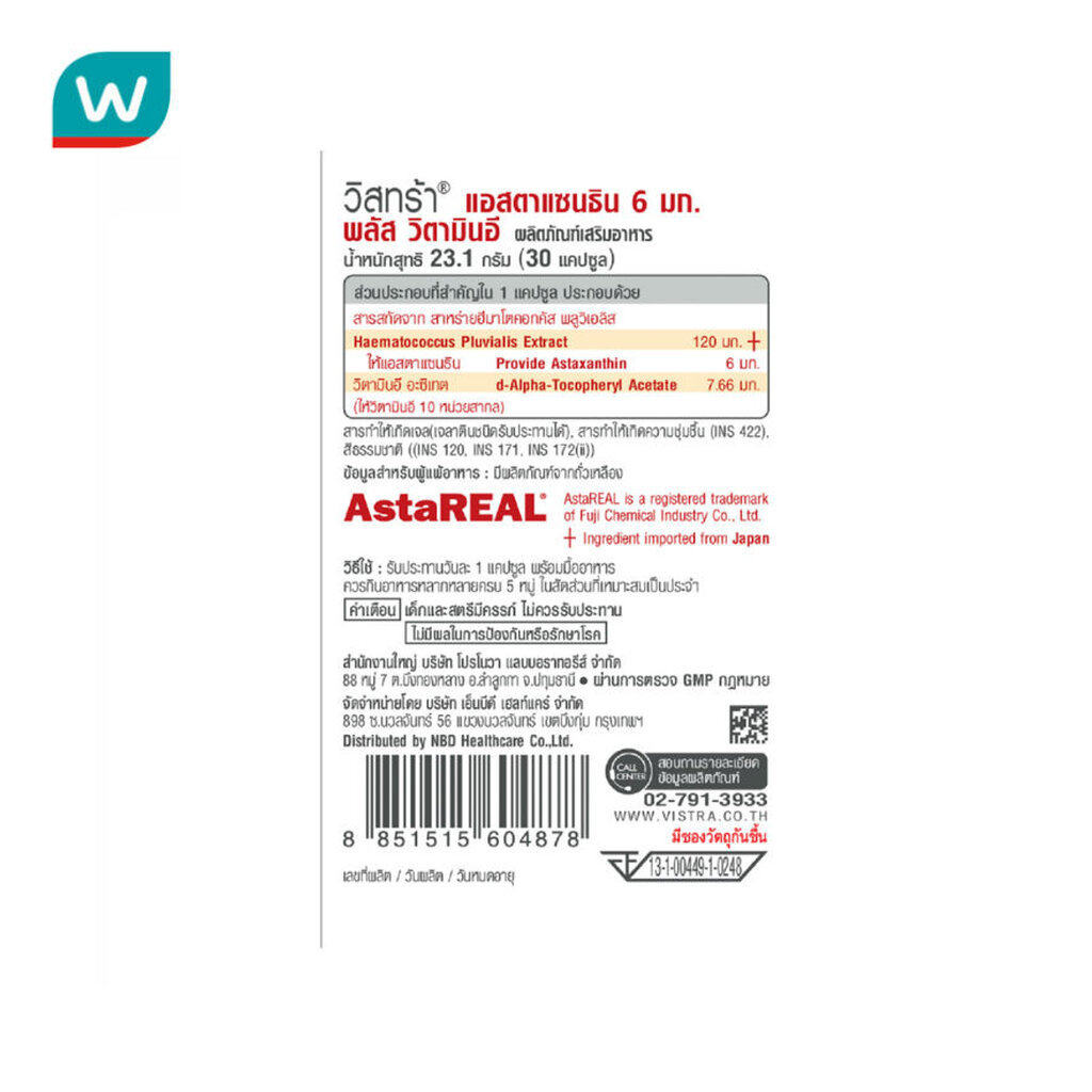 Vistra วิตามินอี Vistra Astaxanthin วิสทร้า-แอสตาแซนธิน 6มก. 30 แคปซูล