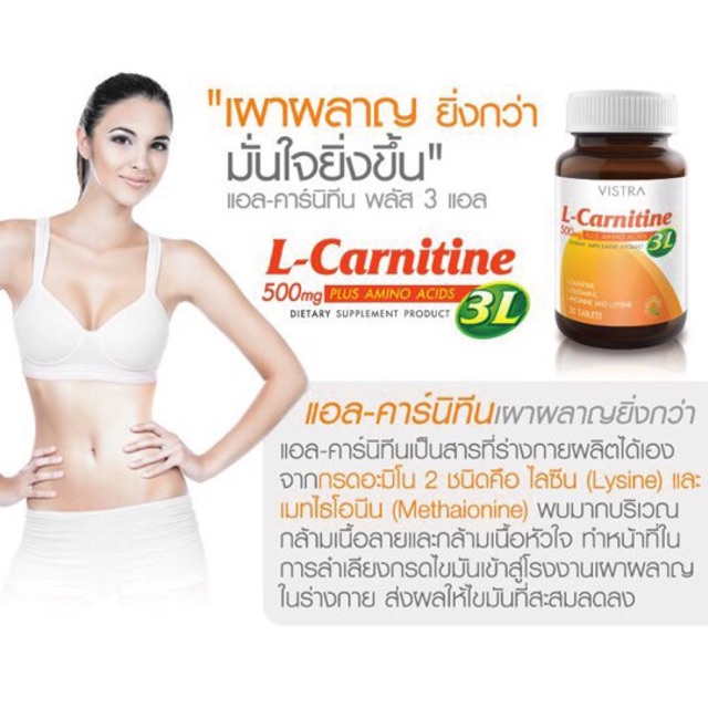 Vistra L-Carnitine Plus 3L 500 mg 30 เม็ด วิสทร้า แอล-คาร์นิทีน พลัส