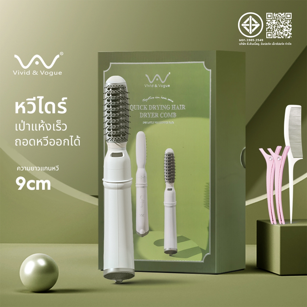 Vivid&Vogue หวีไดร์ รับประกัน1ปี เป็นได้ทั้ง หวี และ ไดร์เป่าผม ใช้จัดแต่งทรงผม เป่าแห้ง มี มอก. รับรอง