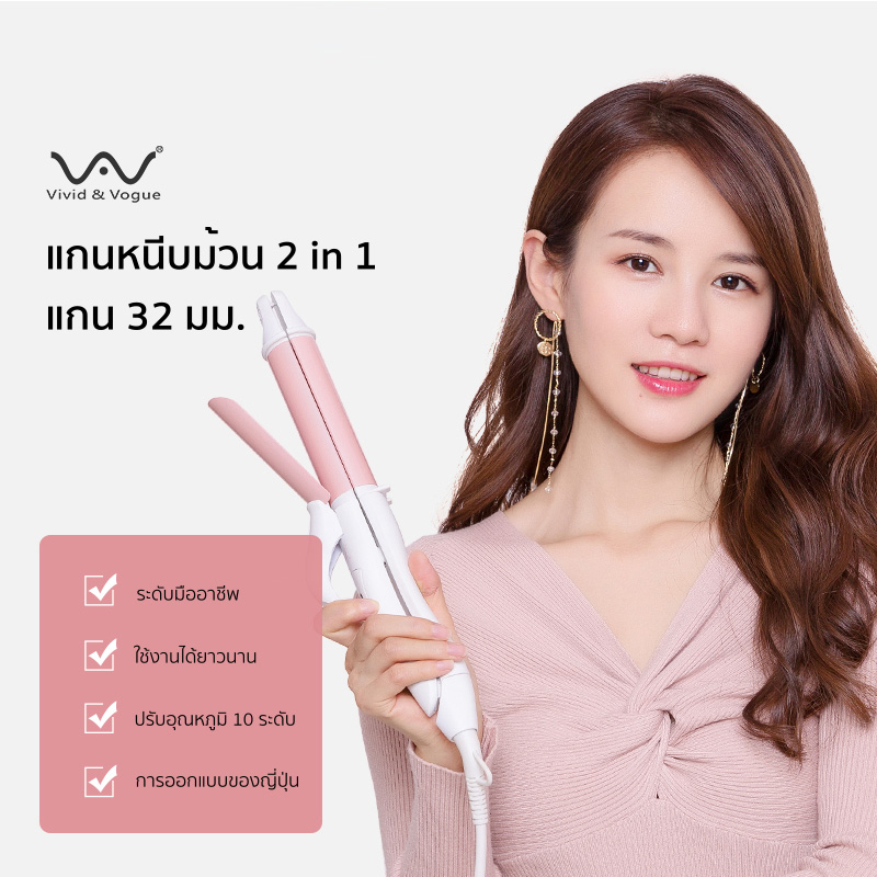 Vivid&Vogue เครื่องม้วนผม32mm เครื่องหนีบผม 2in1 CB ประกัน2ปี หนีบผม ม้วนผม ในเครื่องเดียว สินค้ามี มอก. (รุ่น 055A)