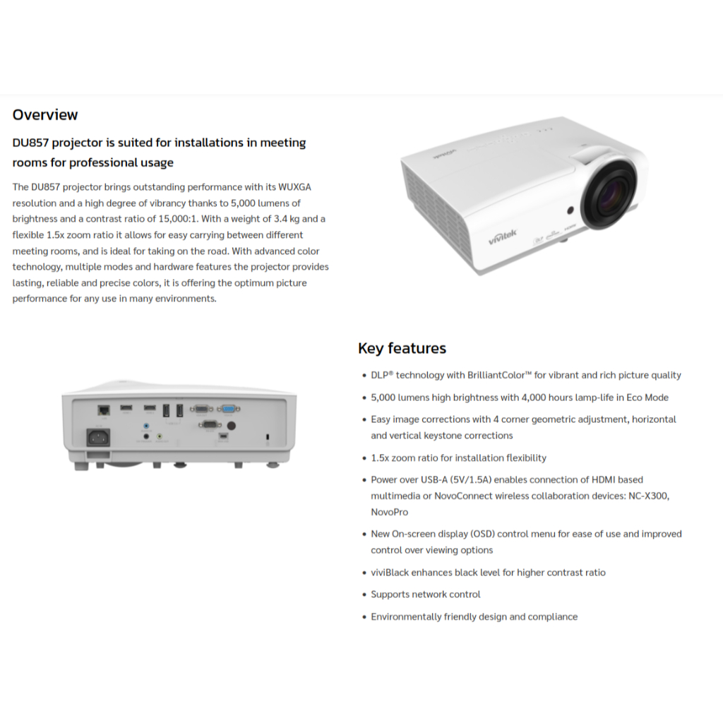 Vivitek DU857 WUXGA (1920×1200) PROJECTOR 5,000 Lumens (โปรเจคเตอร์) พร้อมส่ง