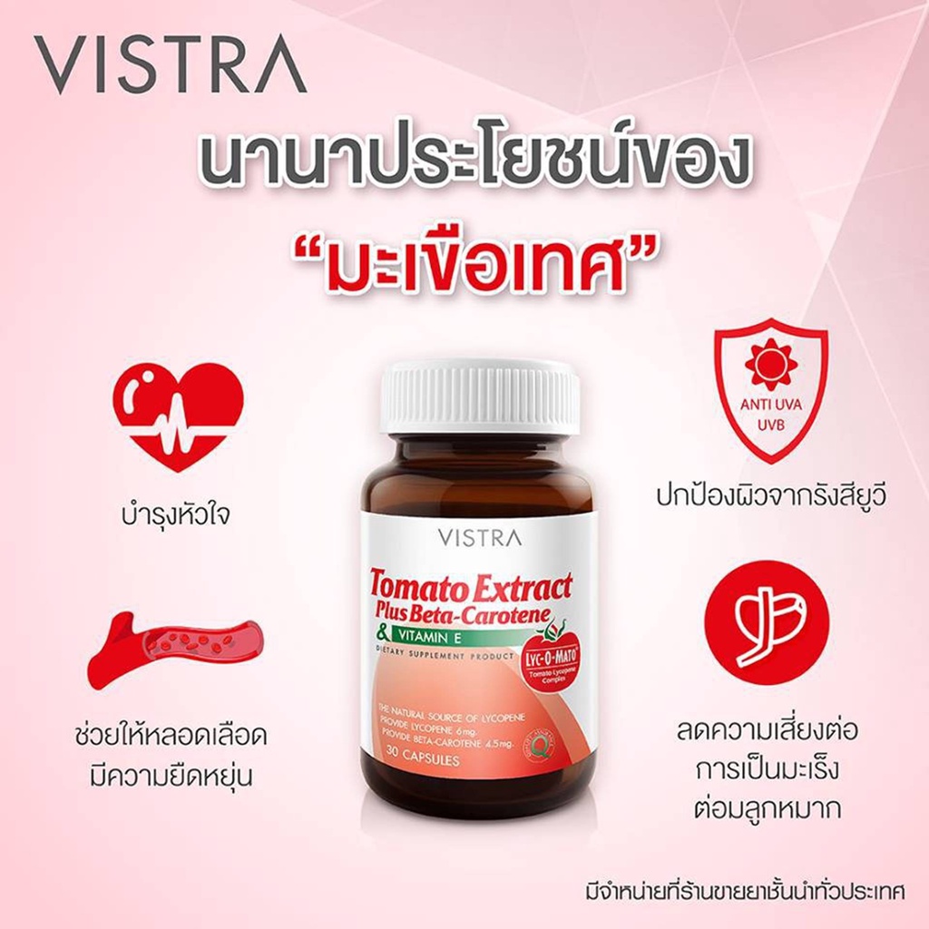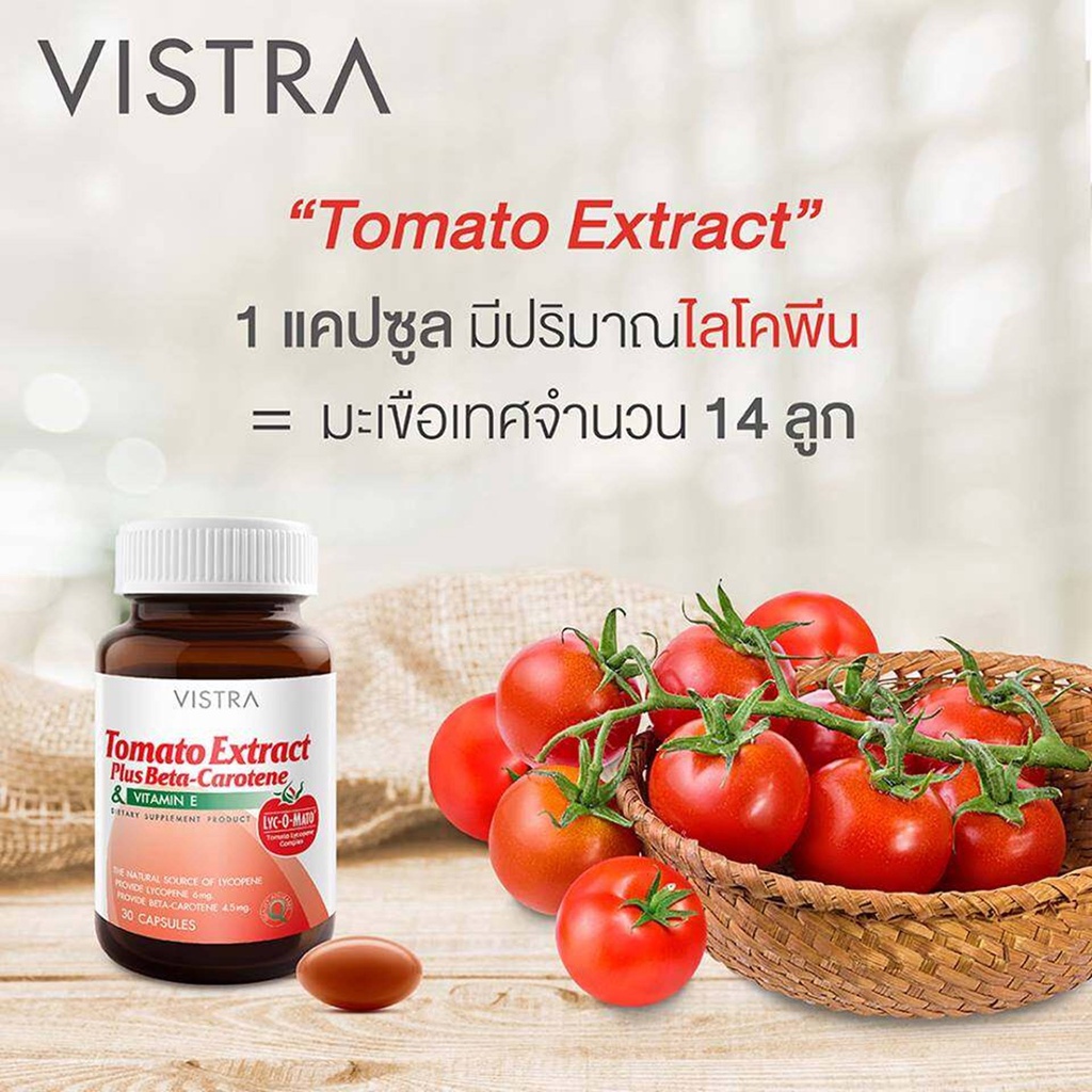 VISTRA Tomato Extract Plus Beta-Carotene & Vitamin E 30 แคปซูล