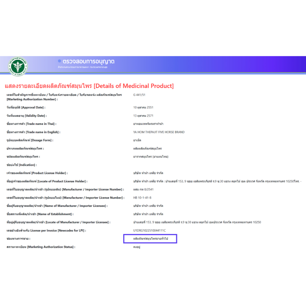 ห้าม้า ยาหอมเทพจิตร (เม็ดอม) ขนาด 30 เม็ด