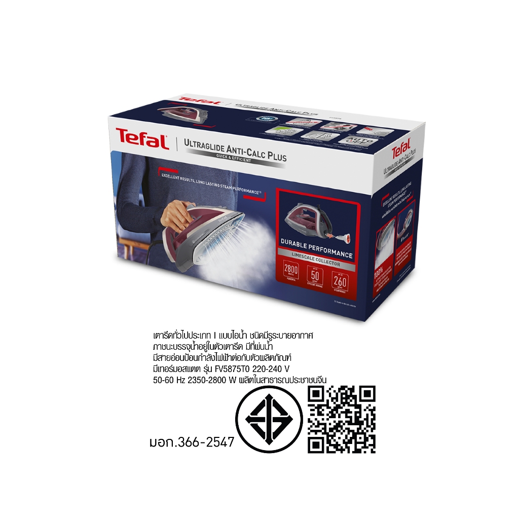 TEFAL เตารีดไอน้ำ รุ่น ULTRAGLIDE ANTI CALC PLUS 2800 วัตต์ รุ่ น FV5875 รับประกันศูนย์ 2ปี