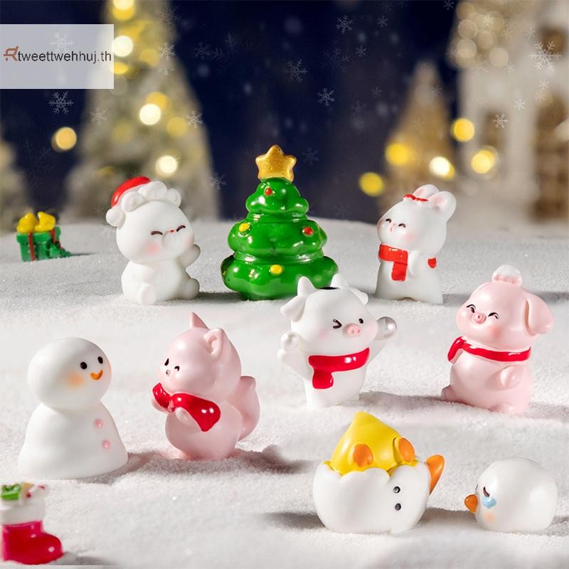 ทวิ การ์ตูนขนาดเล็กรูปปั้นเรซิ่นคริสต์มาสสัตว์เล็กสุนัขหมูไมโครภูมิทัศน์สก์ท็อปรูปปั้นเครื่องประดับงานฝีมือบ้าน ฮะ