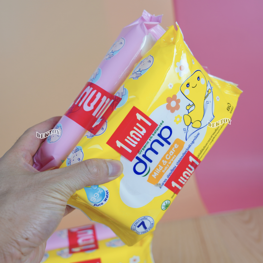 2 ห่อ DMP ดีเอ็มพี ทิชชู่เปียก เบบี้ ไวพ์ สำหรับเด็ก สูตรมายด์ แอนด์ แคร์ 80 แผ่น