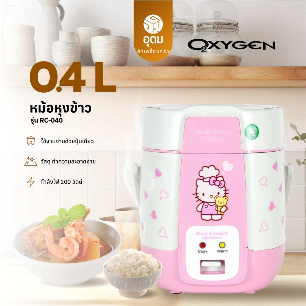 OXYGEN รุ่น RC-040 Hello Kitty หม้อหุงข้าวไฟฟ้ามินิ หม้อหุงข้าว mini ความจุ 0.4 ลิตร รับประกันศูนย์