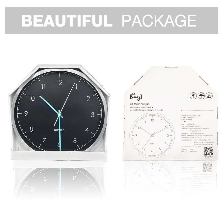 GlobalHouse COZY นาฬิกาแขวนผนัง รุ่น NORA-BK ขนาด 30.0x30.0x4.3 ซม. สีดำ สินค้าของแท้คุณภาพดี