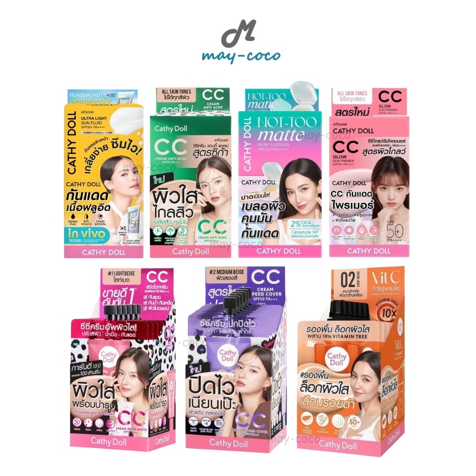ถูก/แท้/มีไลฟ์ (ยกกล่อง 6 ซอง) Cathy Doll Sun Fluid/CC Cream/Cushion/Ampoule กันแดด ซีซีครีม คุชชั่น รองพื้น แอมพลู