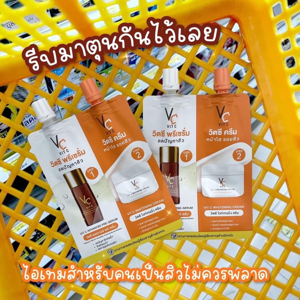 [แยก 1 ซอง] น้องฉัตร 2 in 1 VC Vit C วิตซีพรีเซรั่ม+วิตซีครีม ขนาด 8 g.