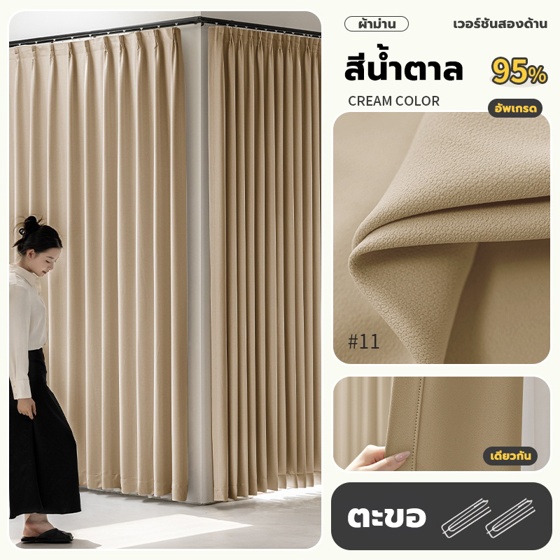 ผ้าม่านกันแสง 99.9% ม่านแขวน ตะขอ ม่านสีพื้น ฉนวนกันความร้อน ป้องกันแสงและร้อนได้อย่างมีประสิทธิภาพ