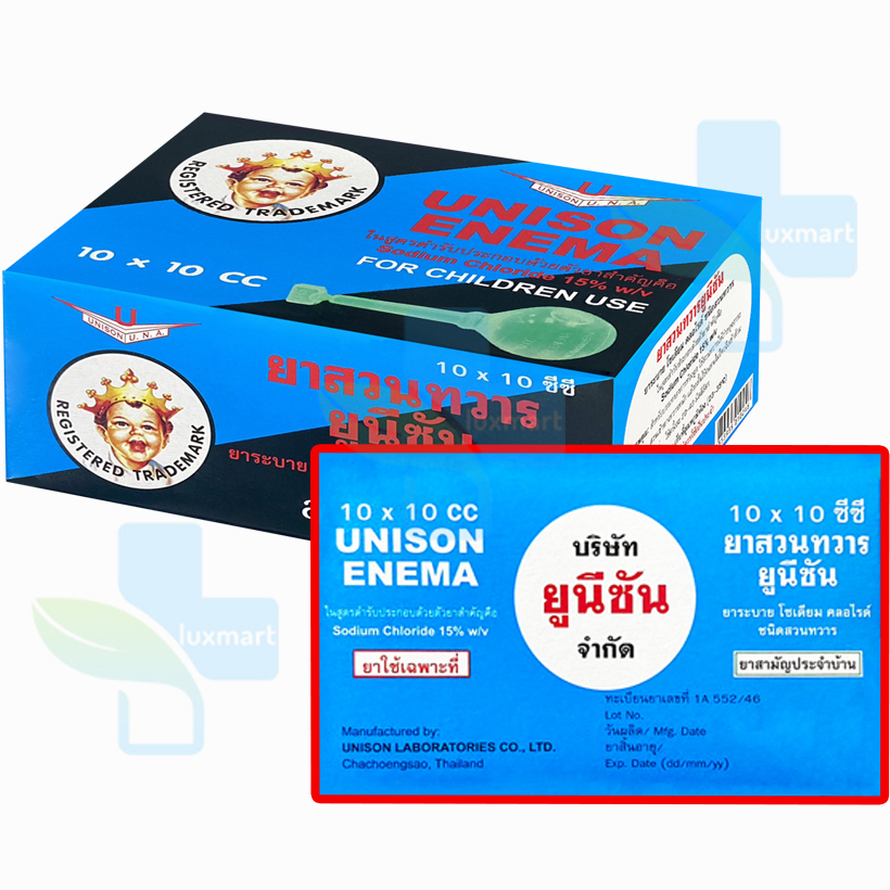 แบ่งขาย 1 ลูก ยูนิซัน ยาสวนทวาร Unison สำหรับผู้ใหญ่ ขนาด 20 ซีซี สำหรับเด็ก 10 ซีซี