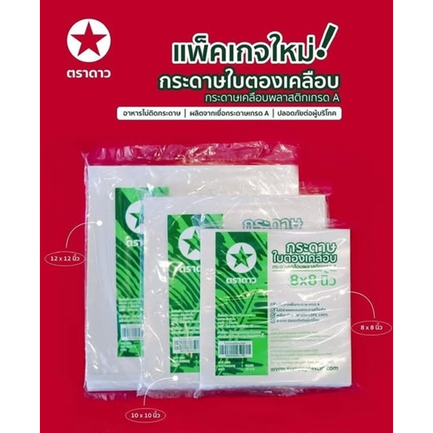 กระดาษห่ออาหาร ใบตองเทียม ตราดาว 12x12 นิ้ว แพ็ค 1 กิโลกรัม