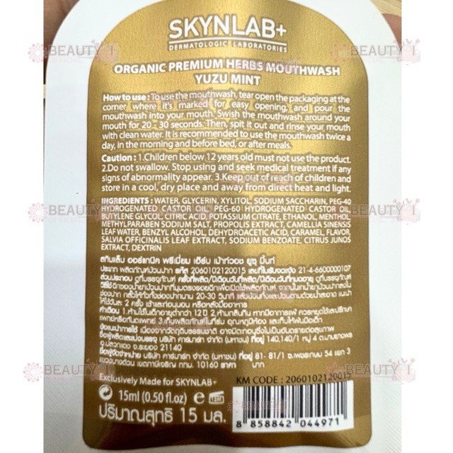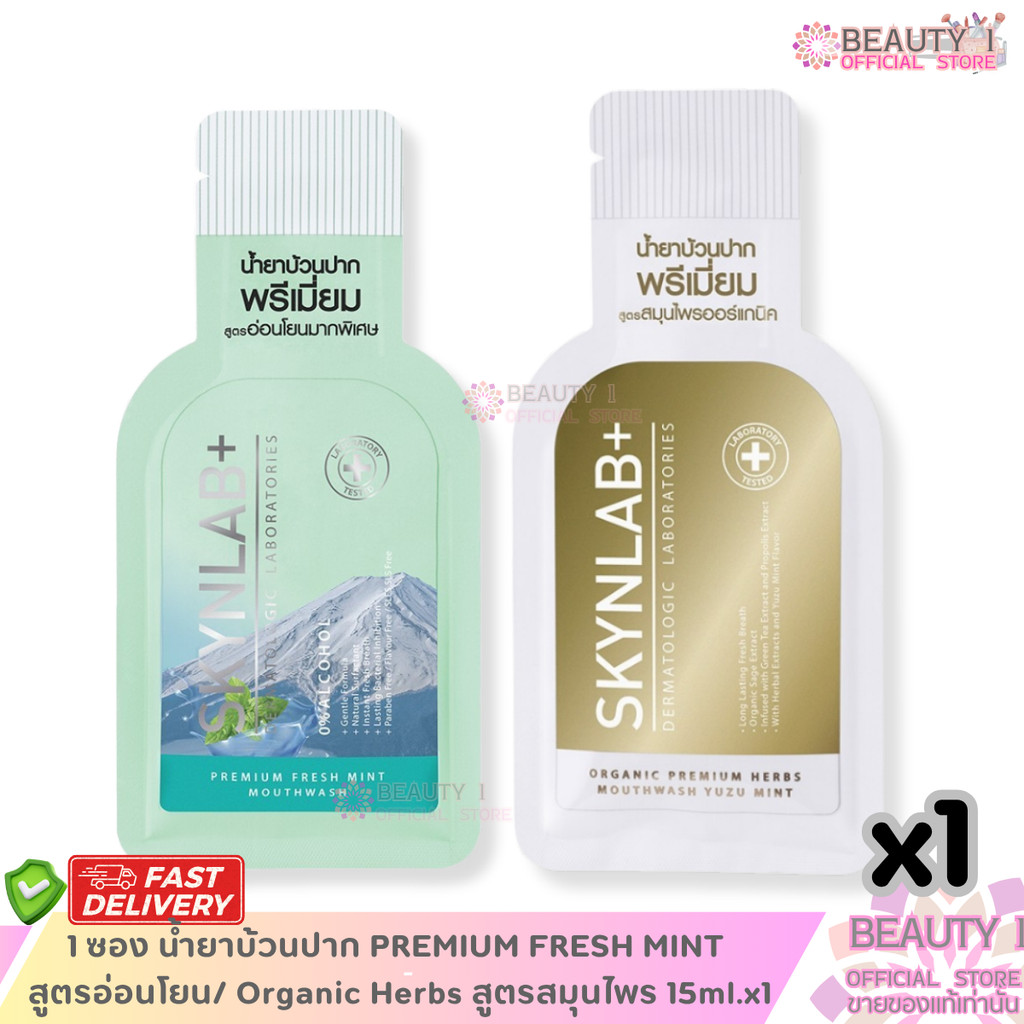 1 ซอง น้ำยาบ้วนปาก PREMIUM FRESH MINT สูตรอ่อนโยน/ Organic Herbs สูตรสมุนไพร 15ml.x1