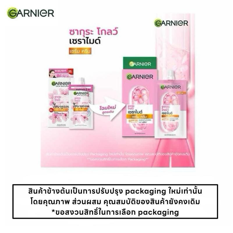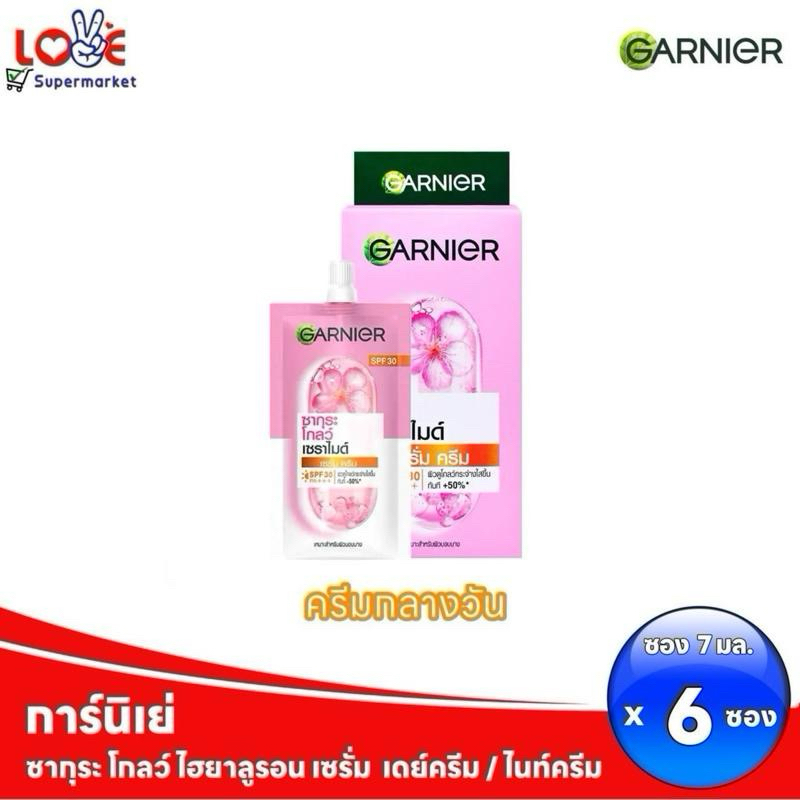 Garnier การ์นิเย่ ซากุระ โกลว์ ไฮยาลูรอน เซรั่ม เดย์ครีม/ไนท์ครีม 7 มล. x 6 ซอง