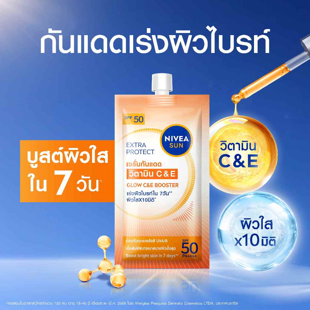นีเวีย ซัน เอ็กซ์ตร้า โพรเท็ค ซี แอนด์ อี ไบรท์ บูสเตอร์ ซัน เซรั่ม เอสพีเอฟ50 พีเอ++++ 7 มล. x12 NIVEA กันแดดผิวหน้า