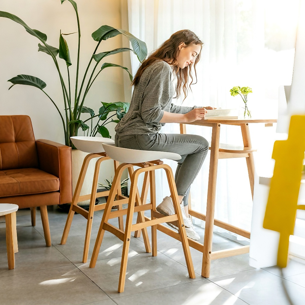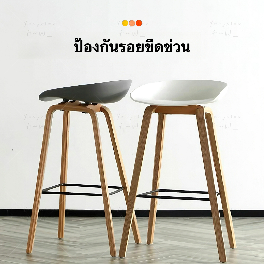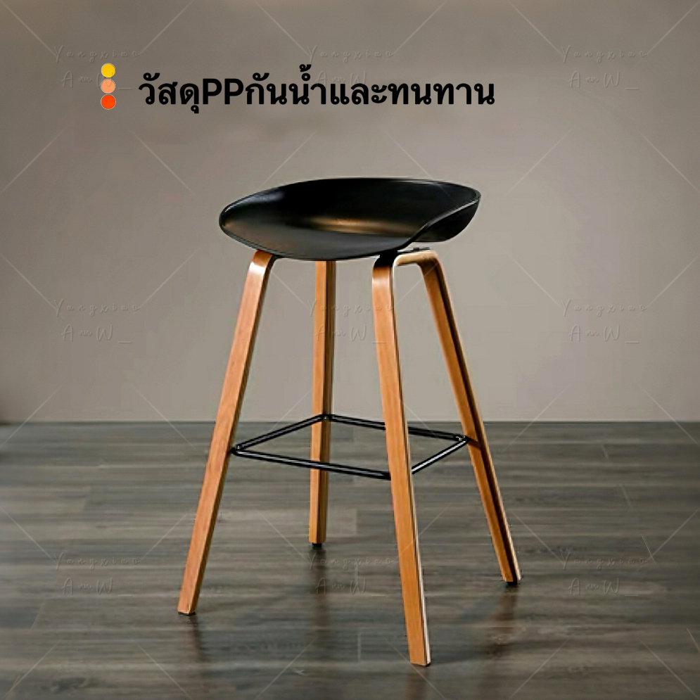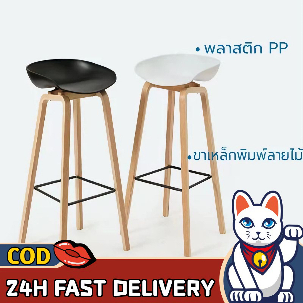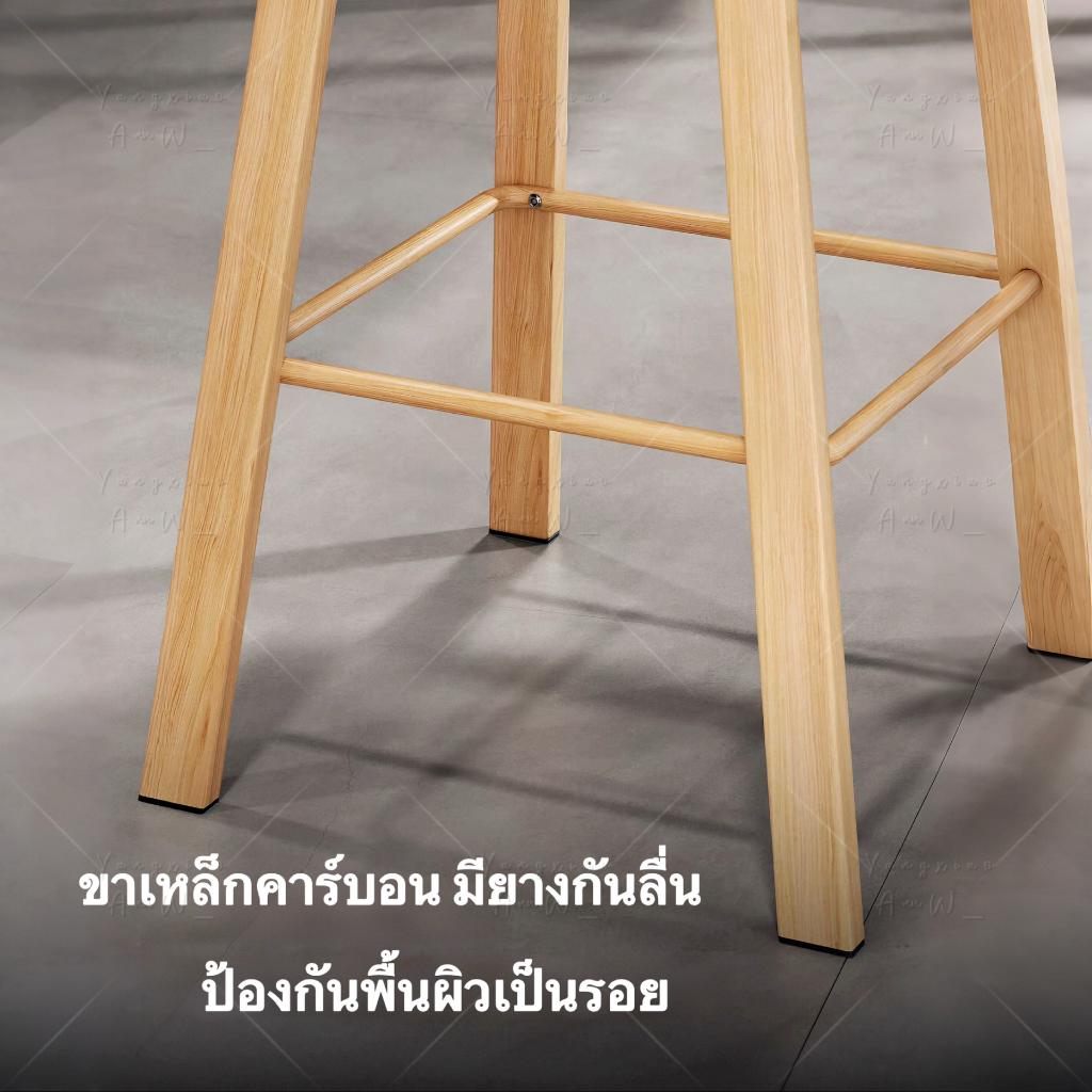 Lucky😸มีพร้อมส่ง เก้าอี้บาร์สูงขาเหล็กลายไม้ขนาดสินค้าW47xD52xH85cm