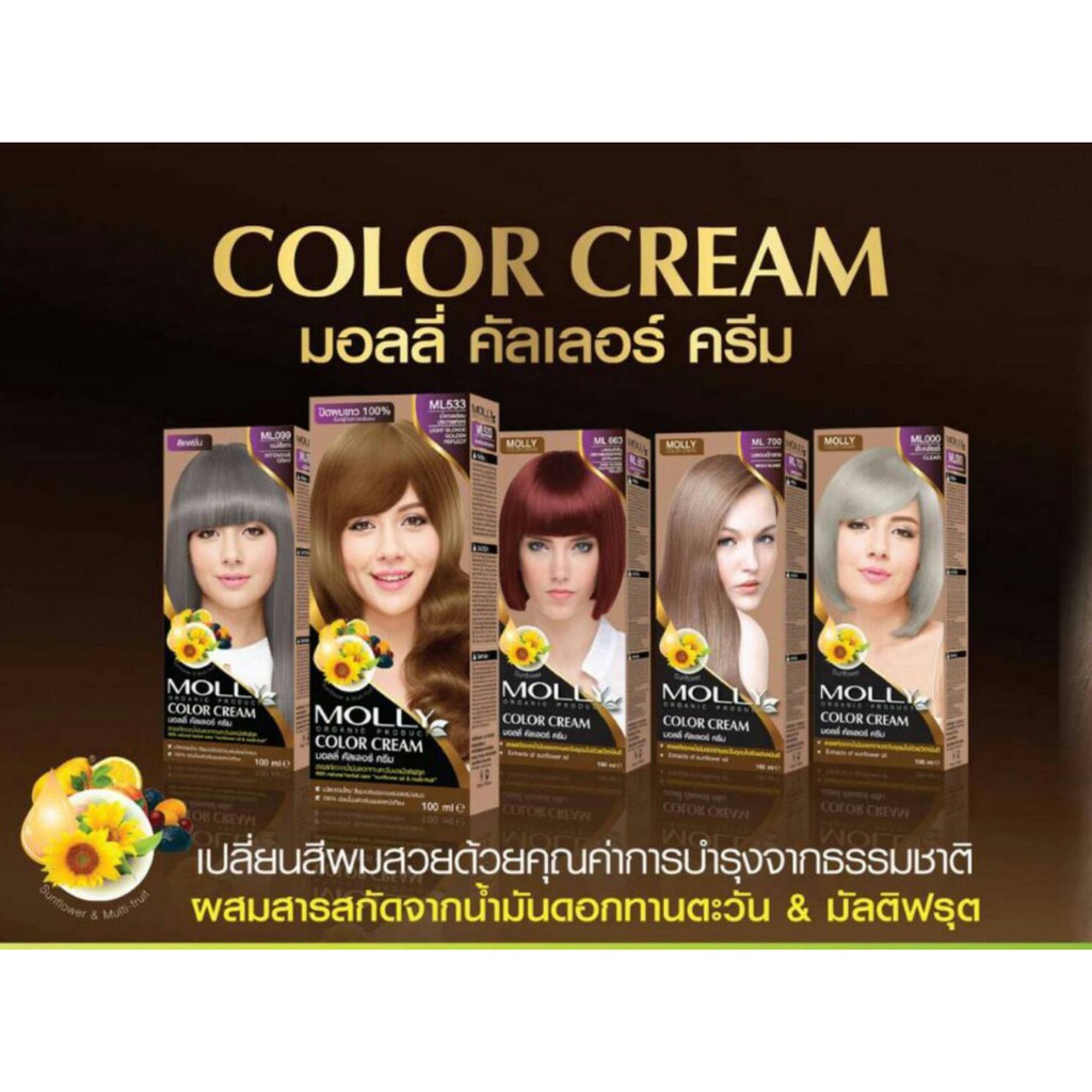 (โทนแฟชั่น)Molly ครีมเปลี่ยนสีผมมอลลี่ มอลลี่ คัลเลอร์ ครีม 100 ml.
