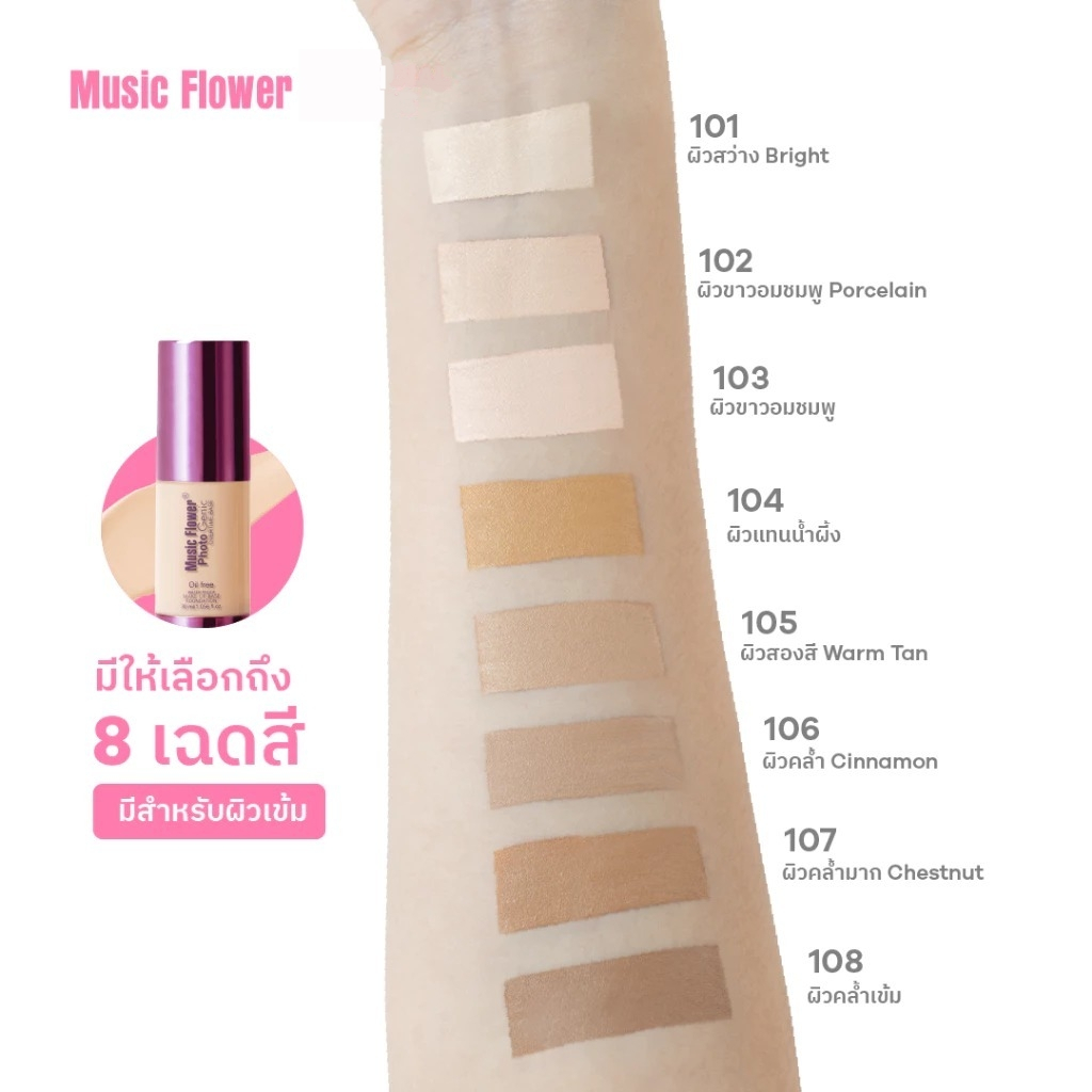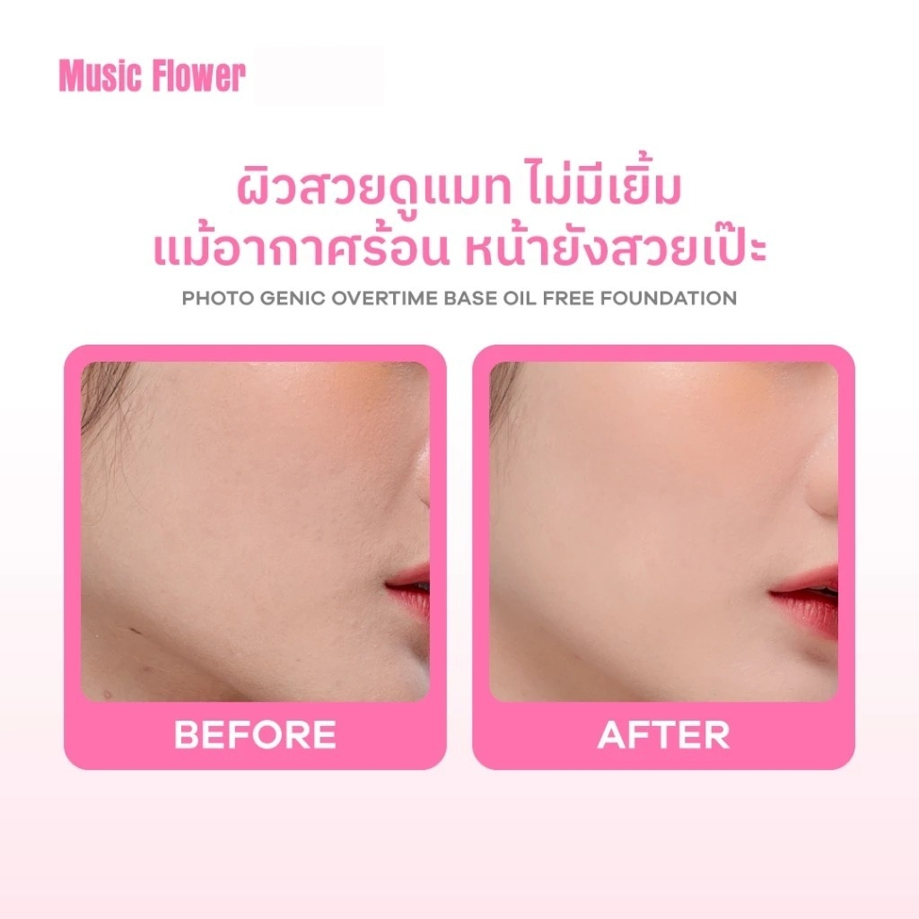 ถูก/แท้/มีไลฟ์ รองพื้น Music Flower Photo Genic Overtime Base Oil Free Foundation รองพื้นเนื้อครีม คุมมัน กันน้ำ