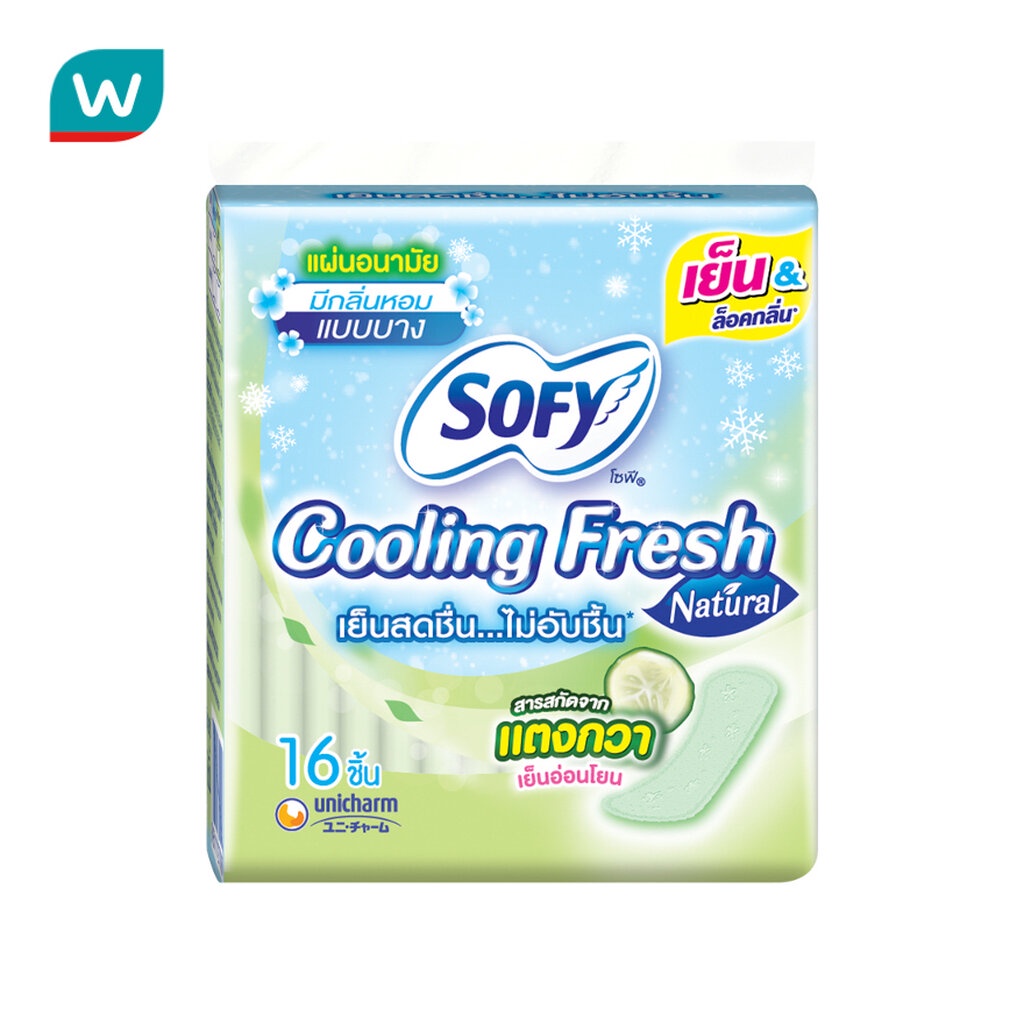 Sofy โซฟี แผ่นอนามัย คูลลิ่ง เฟรช เนเชอรัล สลิม มีกลิ่นหอม 16 ชิ้น