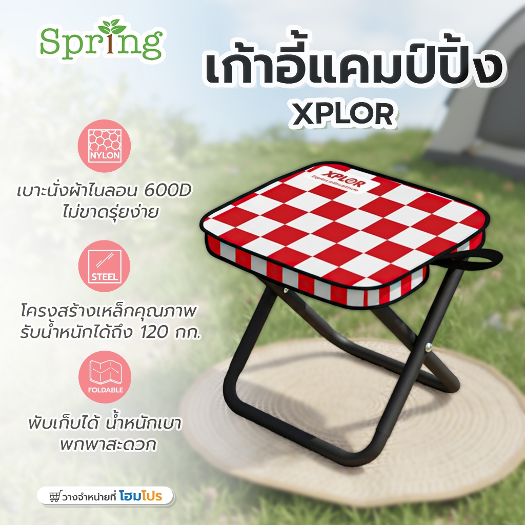 SPRING เก้าอี้พับตั้งแคมป์พกพา XPLOR สีแดง/ขาว จัดส่งโดย HomePro