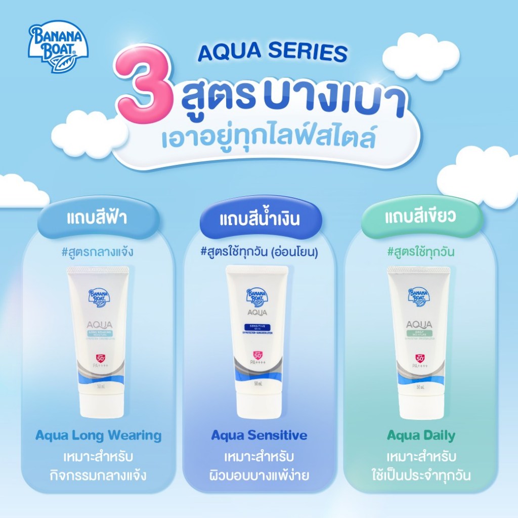 Banana Boat Aqua Daily /Sensitive Skin /Long Wearing Moisture UV Protection Sunscreen Lotion 50ml ครีมกันแดด Banana Boat