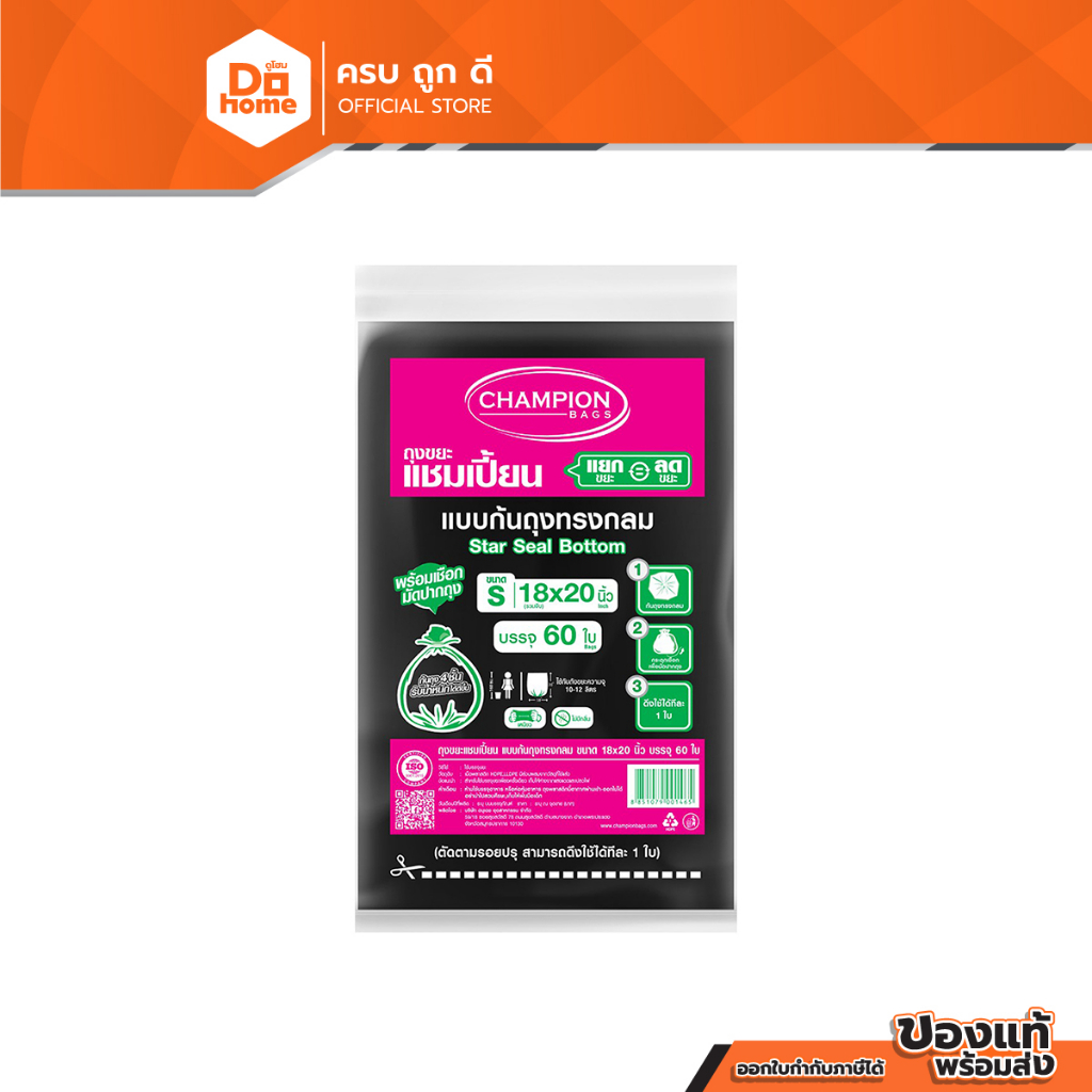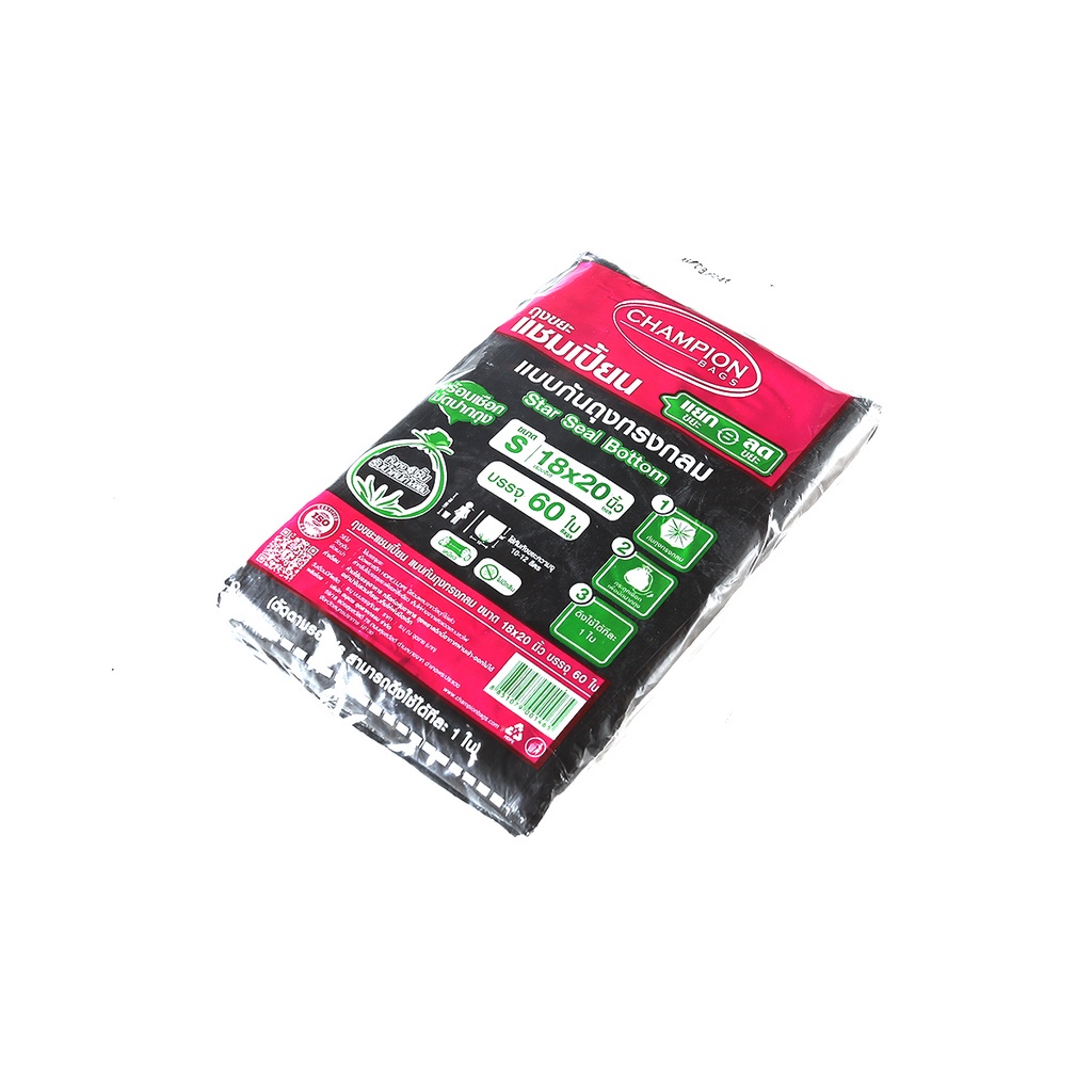 แชมเปี้ยน ถุงขยะก้นกลม ขนาด 18x20 นิ้ว สีดำ (แพ็ค 60 ใบ) |ZWG|