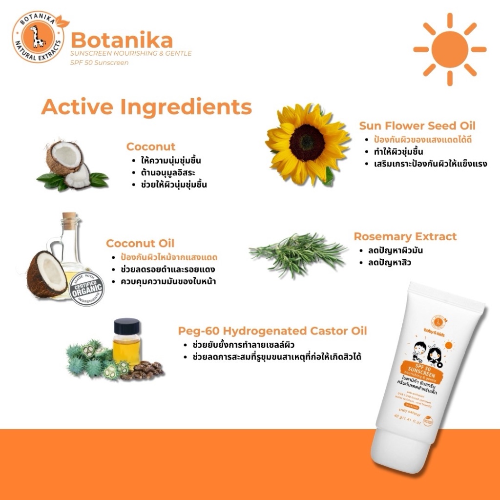Botanika ครีมกันแดดสำหรับเด็ก ออร์แกนิค SPF 50+ PA+++