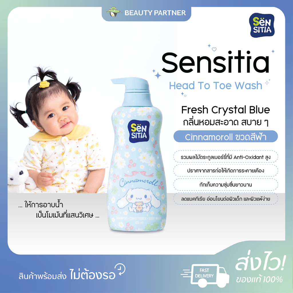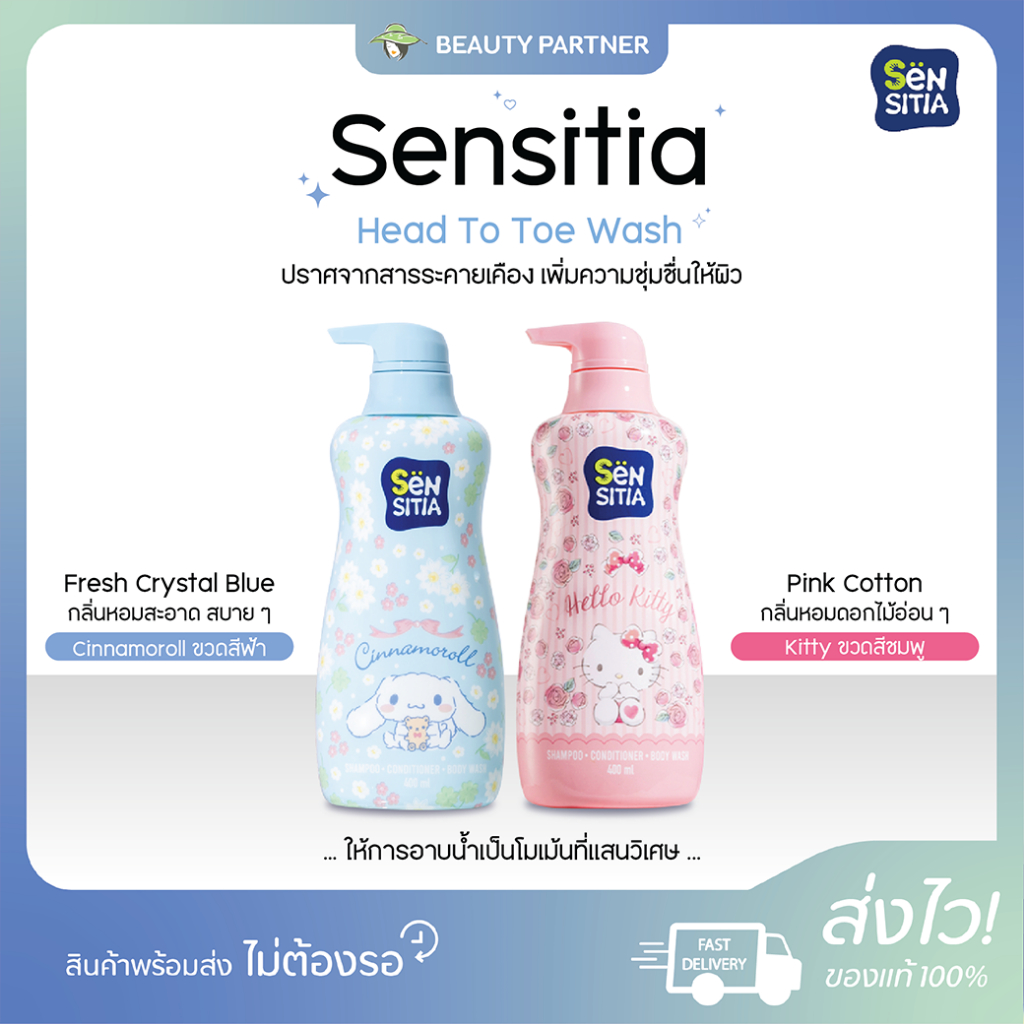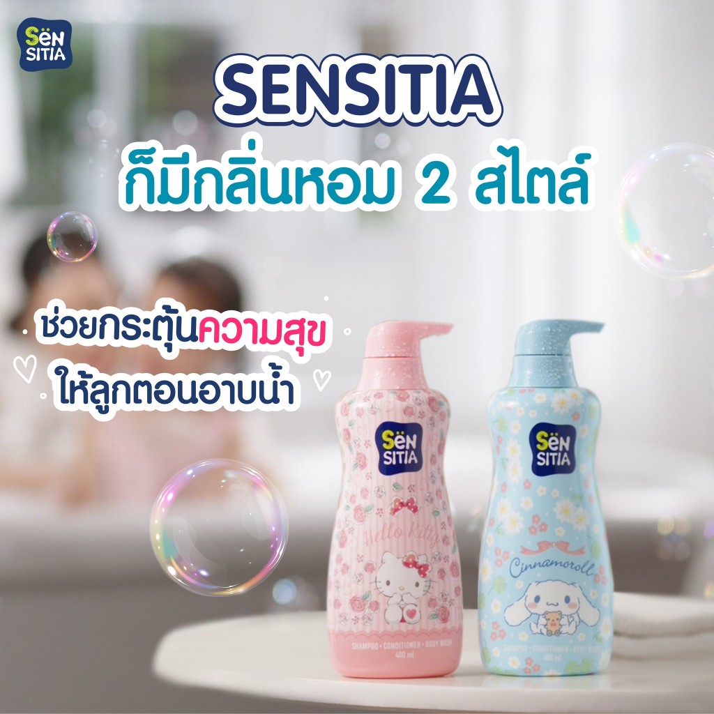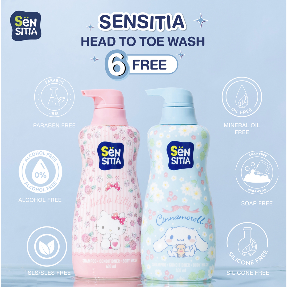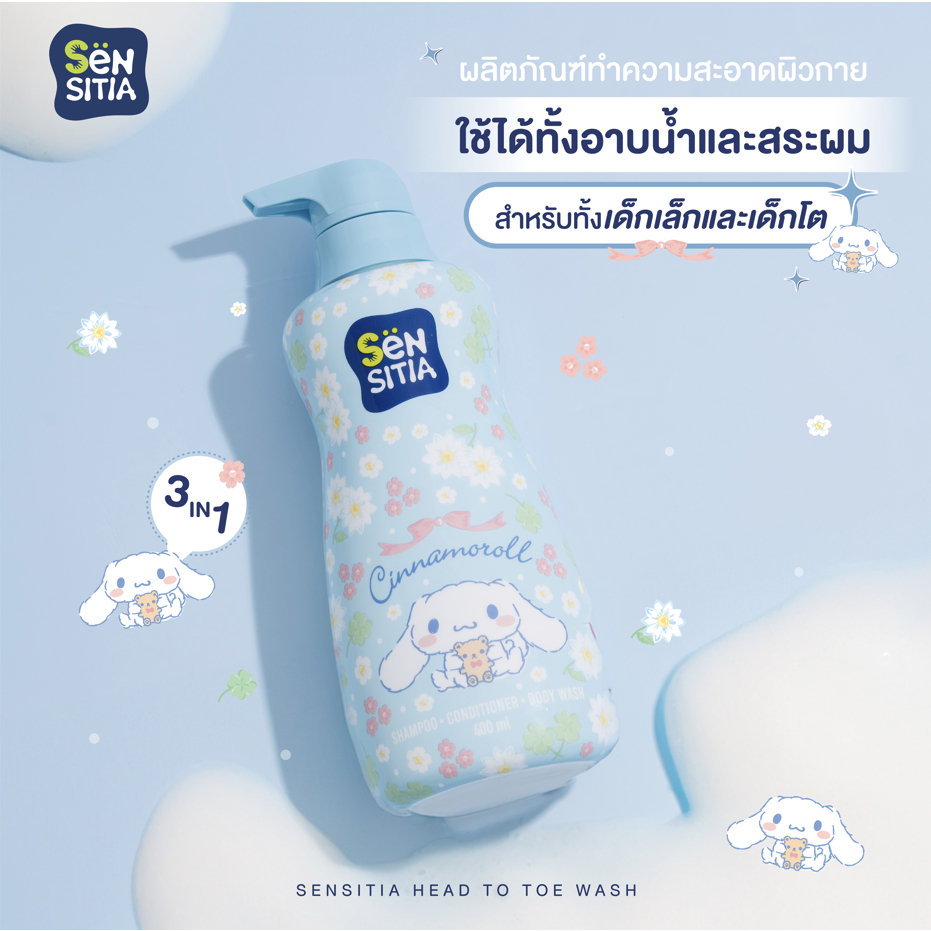 Sensitia Head To Toe Wash [Cinnamroll/Kitty] เซ็นซิเทีย เฮด ทู โท วอช [สีฟ้า/ชมพู] [400 ml.] [1 ขวด] ครีมอาบน้ำเด็ก