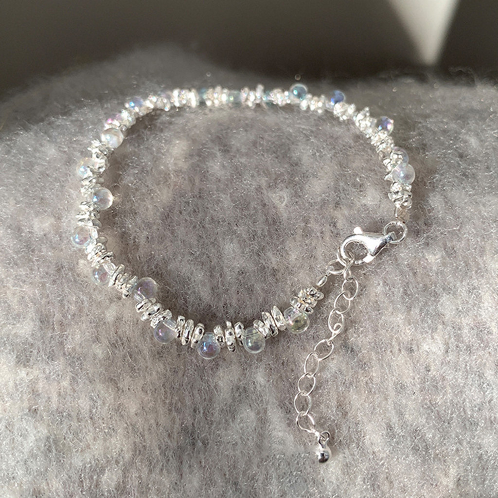 สร้อยข้อมือลูกปัด เหมือนฝัน พร้อมหลอดไฟขนาดเล็ก & แวววาว สําเนียง - ปรับ โบโฮ เก๋ไก๋ โซ่ สําหรับผู้หญิงน้ําหนักเบาวางซ้อนกันได้การออกแบบเฉพาะ