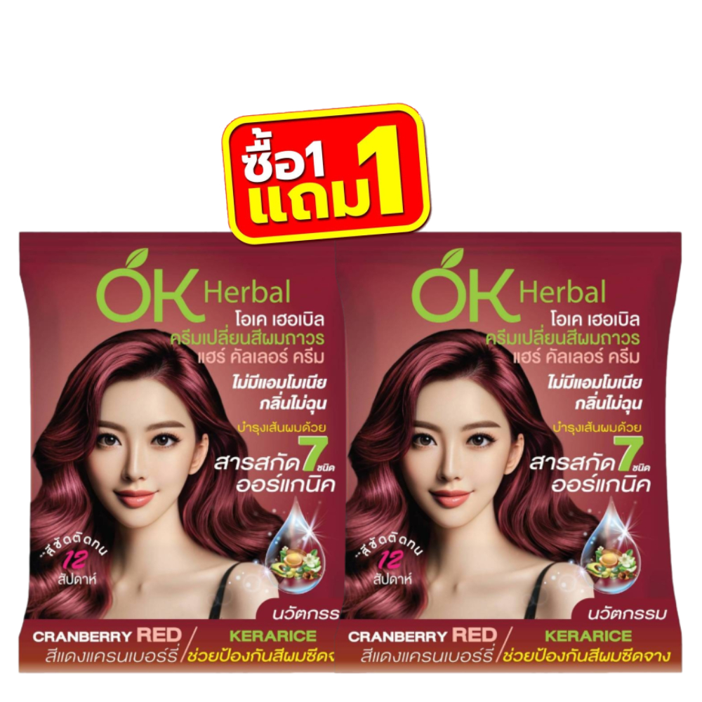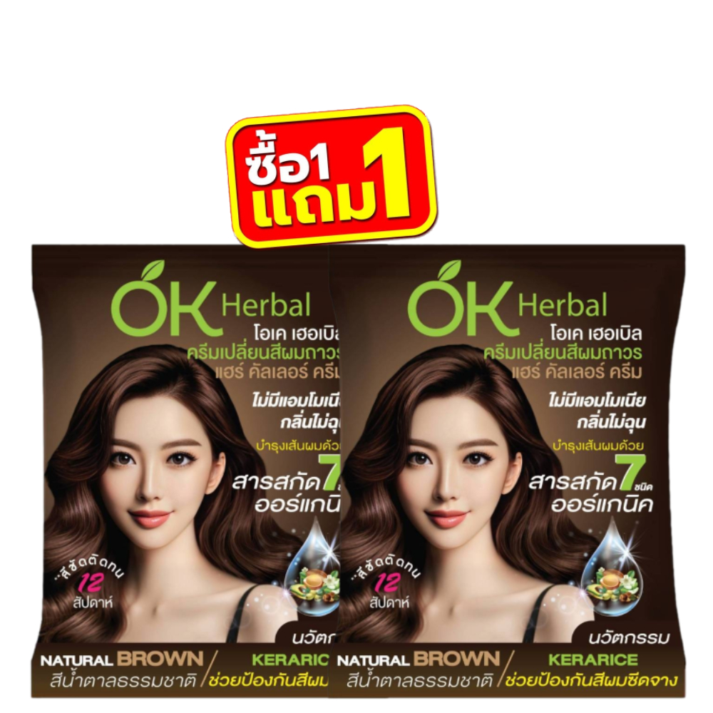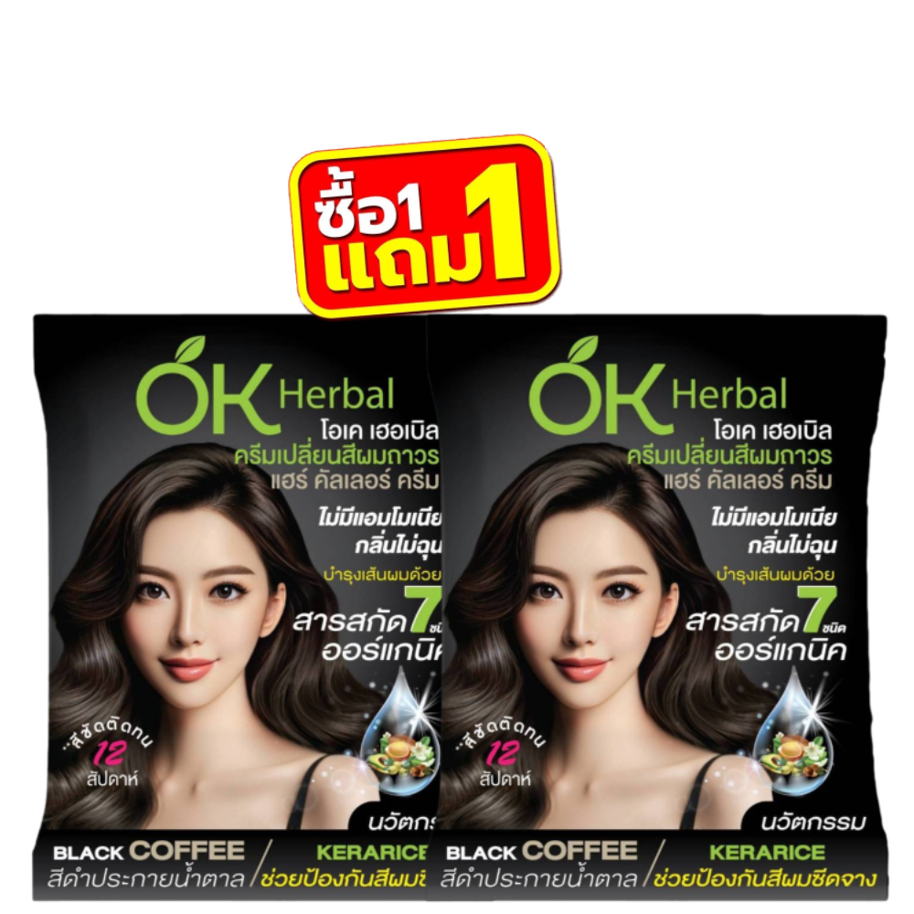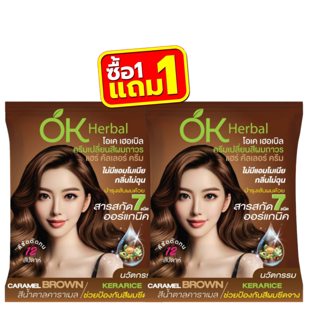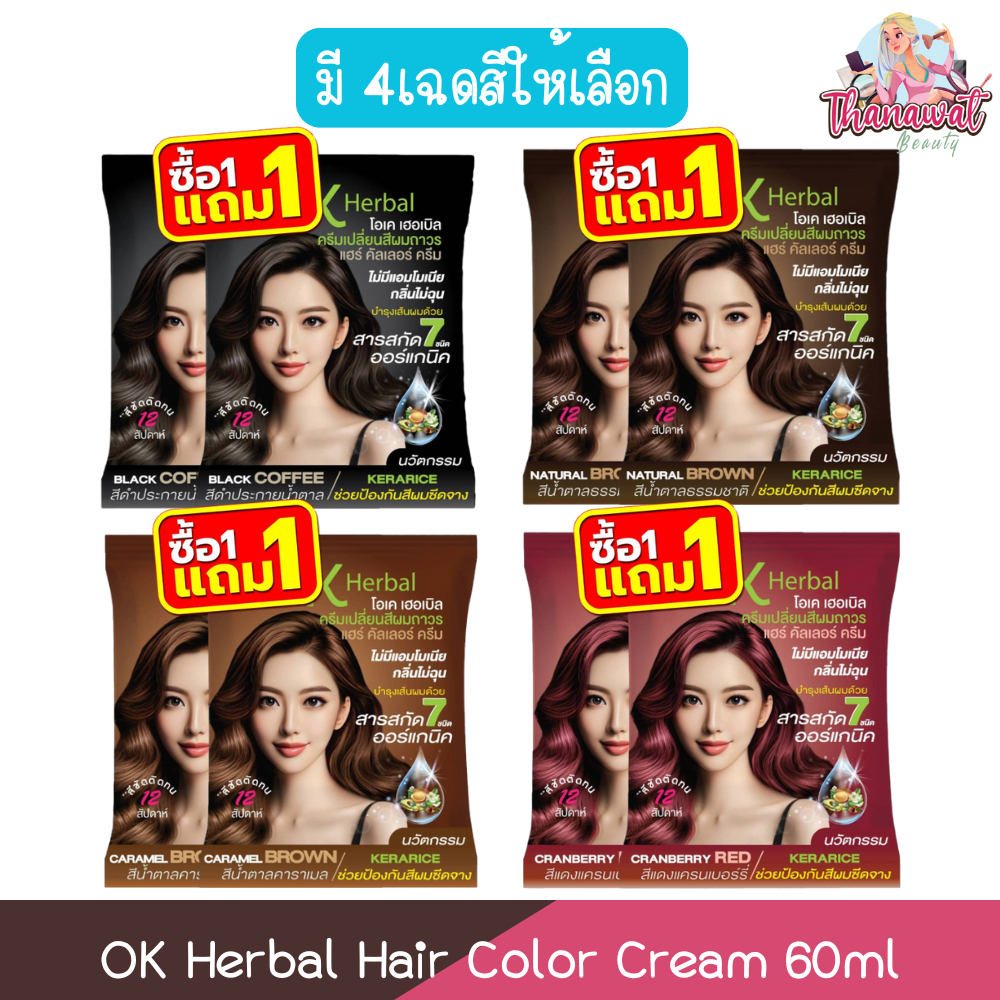 (1แถม1) OK Herbal Hair Color Cream 60ml โอเค เฮอเบิล แฮร์ คัลเลอร์ ครีม 60มล